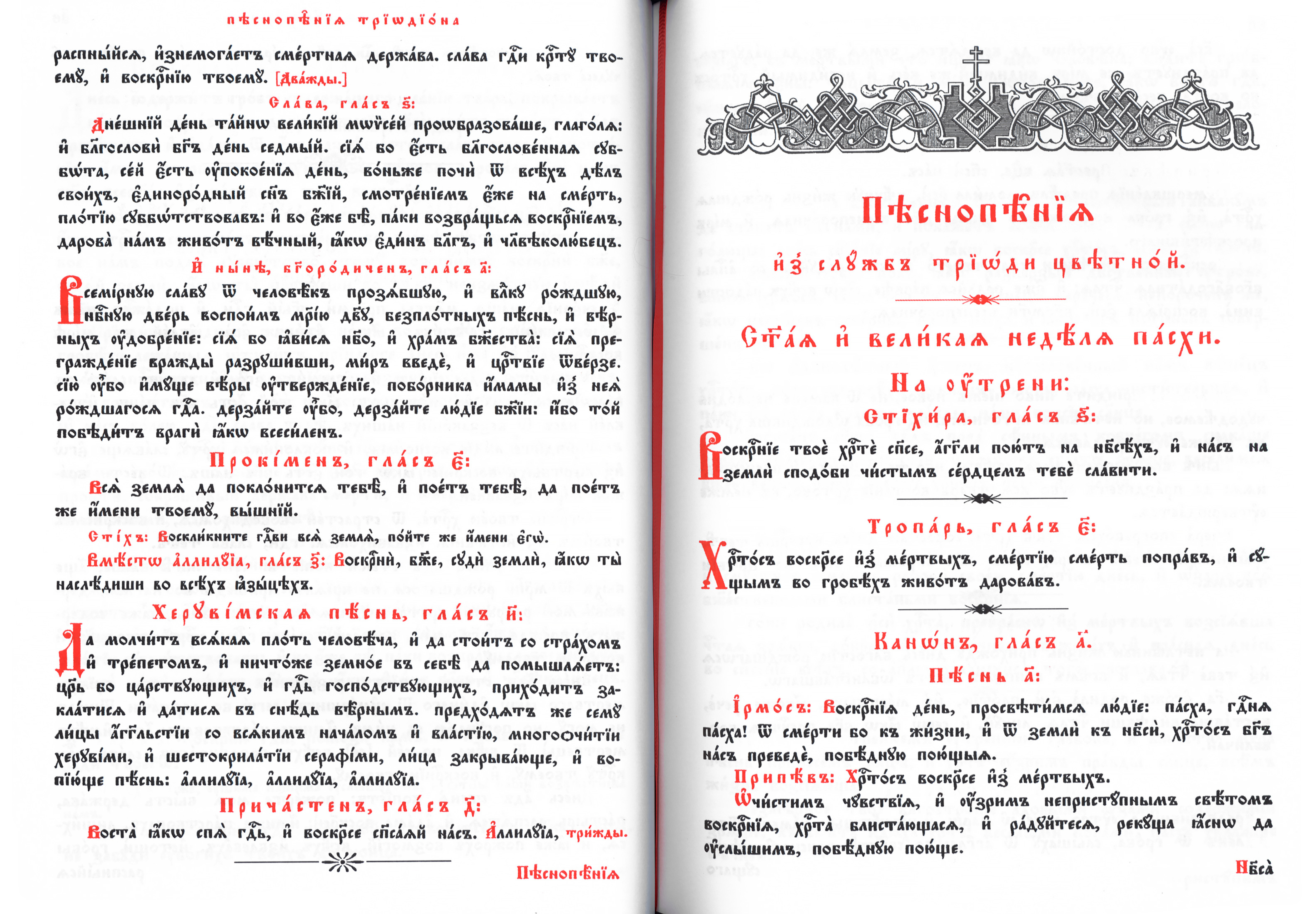 Издание уникально по полноте. При совершении служб: двунадесятым праздникам, дням воскресным, бденным святым, Первой и Страстной седмиц эта книга, — т.к. включает все песнопения, — может заменить для певцов на клиросе Октоих, Триоди и Минеи.
