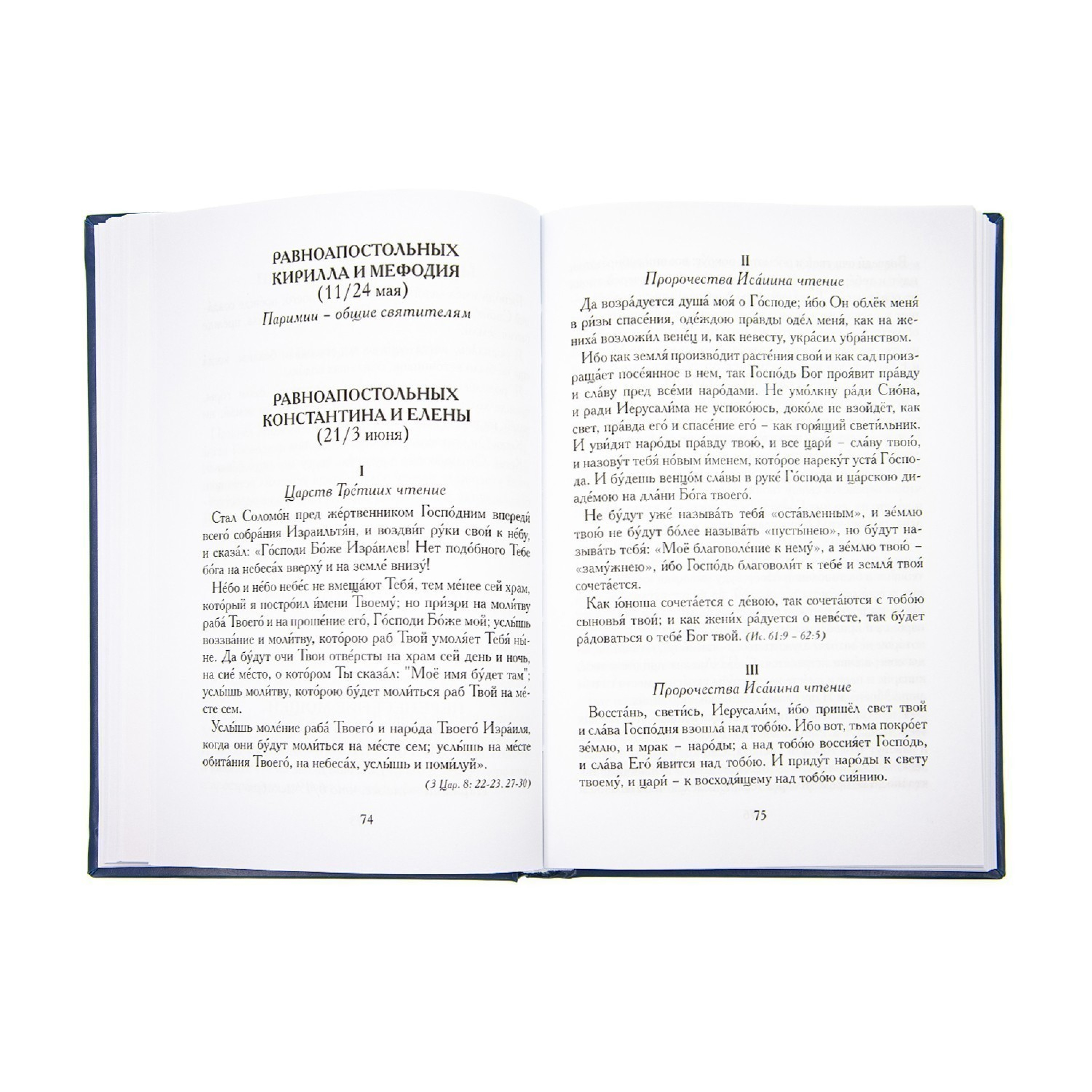 "Паримийник" – собрание богослужебных чтений (паримий или паремий), как правило, из Ветхого Завета, которые читаются на Вечерне великих праздников, дней памяти чтимых святых, а также на великопостных службах (с прокимнами и тропарями пророчеств на церковнославянском языке), Царских часах и т.п.Почти во всех словах расставлены ударения.Издание аналогично русскому богослужебному Апостолу.