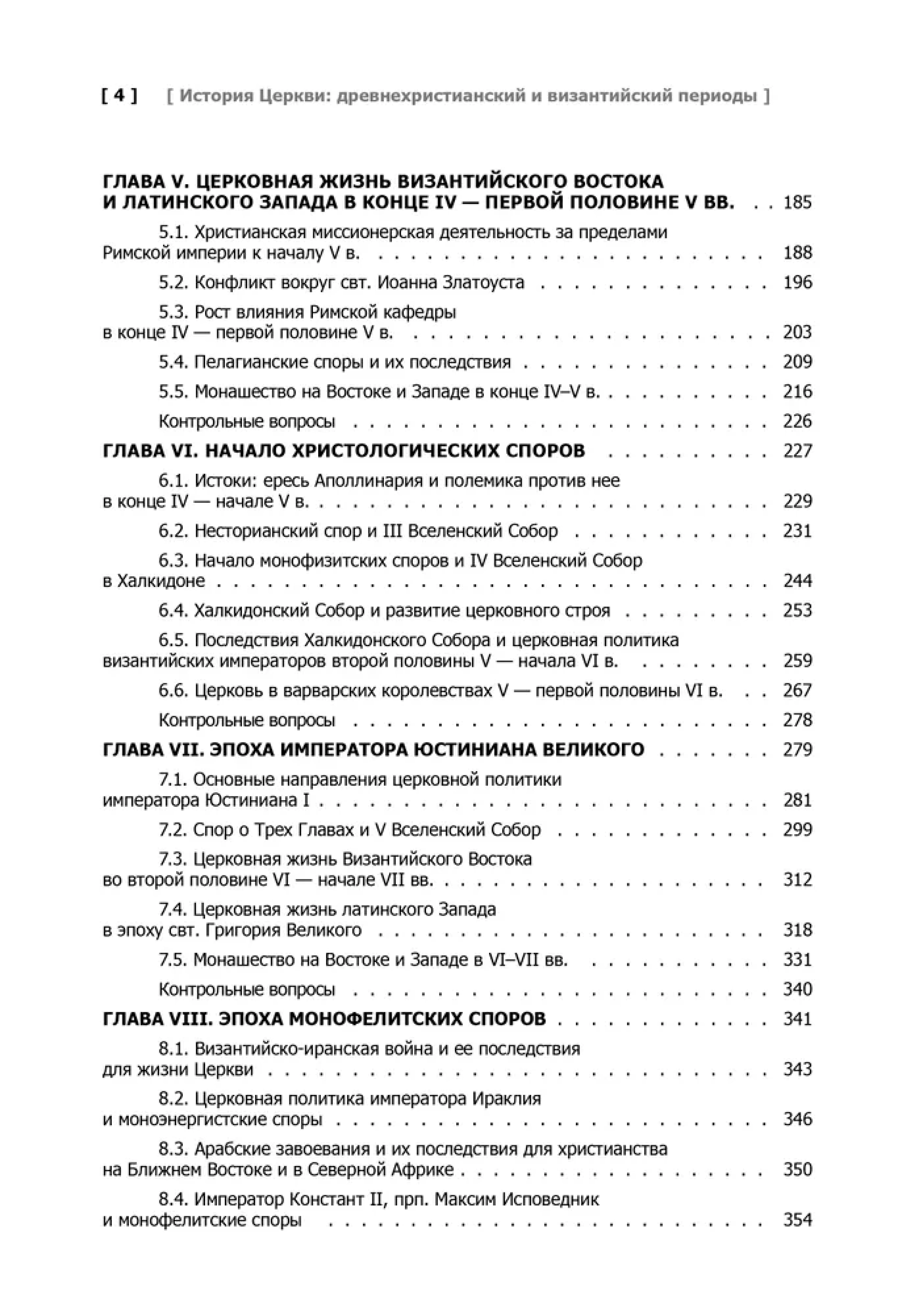 Особое внимание в пособии уделяется истории церковной организации, взаимоотношениям церковной и государственной власти, развитию богословской мысли, церковным конфликтам, христианской миссионерской деятельности, истории возникновения и становления монашества.