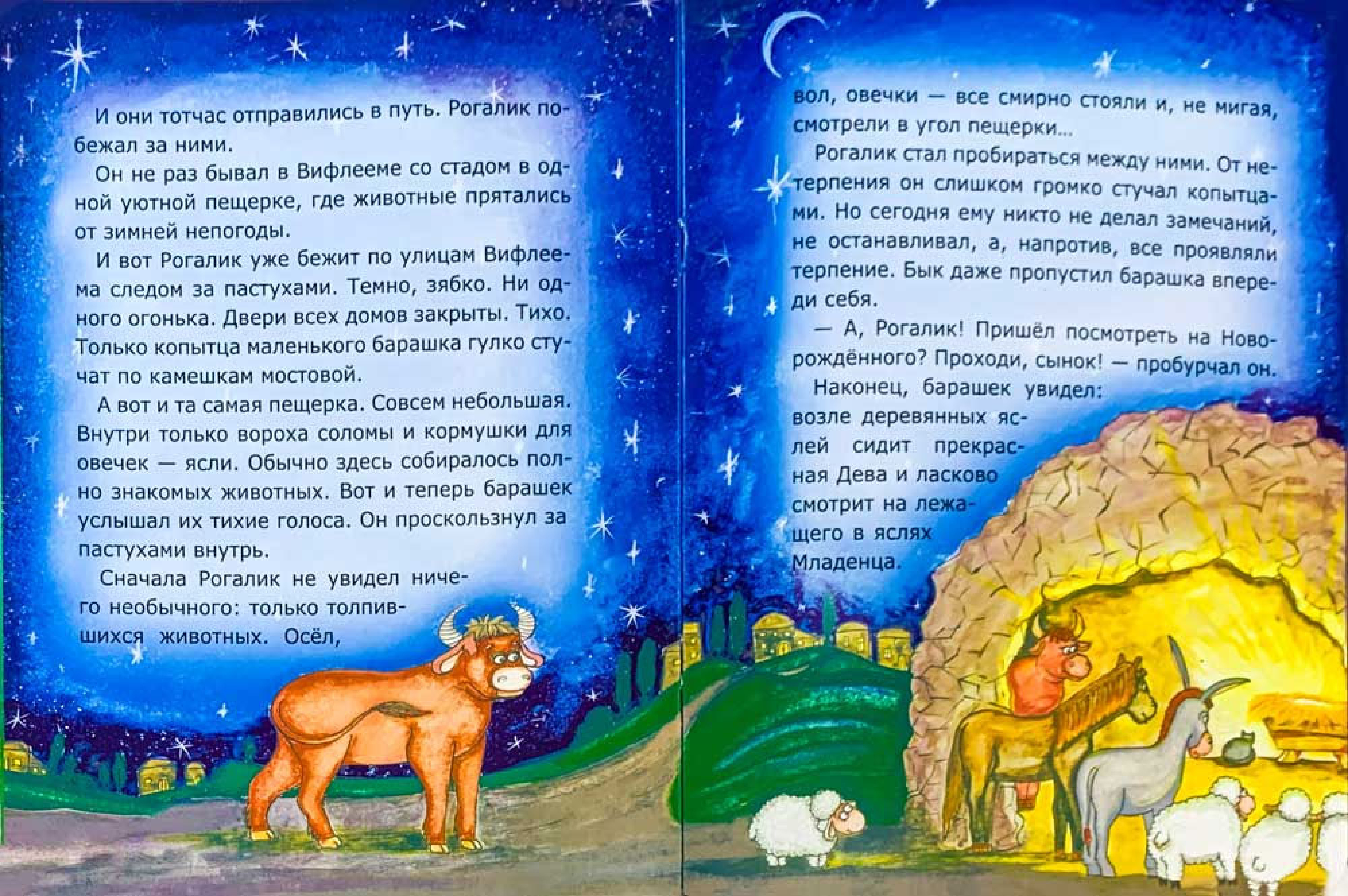 Прочитав эту книгу, вы узнаете, что более двух тысяч лет назад увидел маленький барашек Рогалик в далекой Палестине в Рождественскую ночь. Вместе с барашком мы побываем в городе Вифлееме в небольшой пещерке, где родился Спаситель Господь наш Иисус Христос.