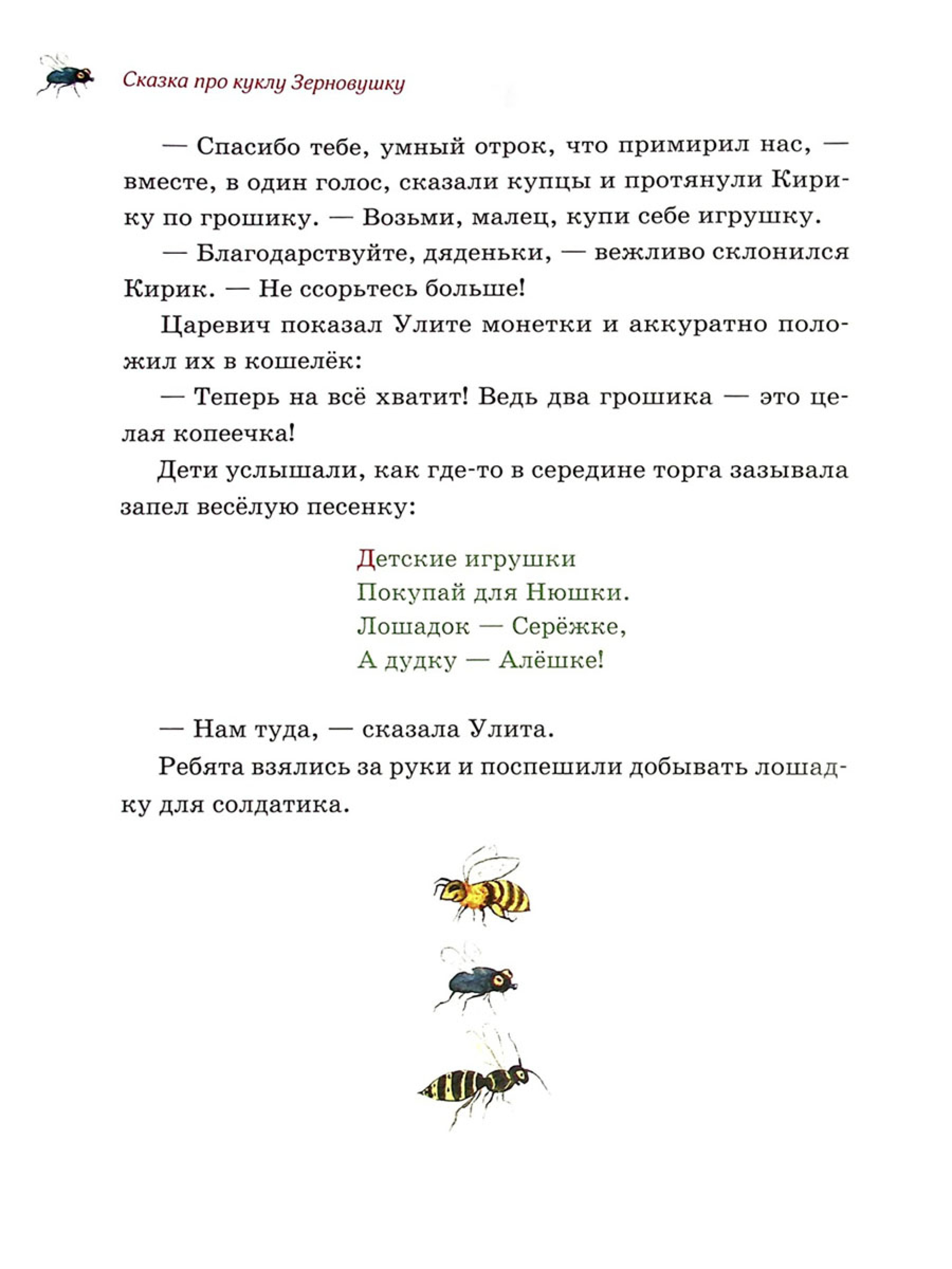 Эта сказка познакомит читателя с бытом и обычаями старины. Благодаря маленьким игрушкам— бирюлькам и самодельной кукле Зерновушке, героиня этой сказки— девочка Улита переживёт множество чудесных, а иногда и опасных приключений, найдёт новых друзей.