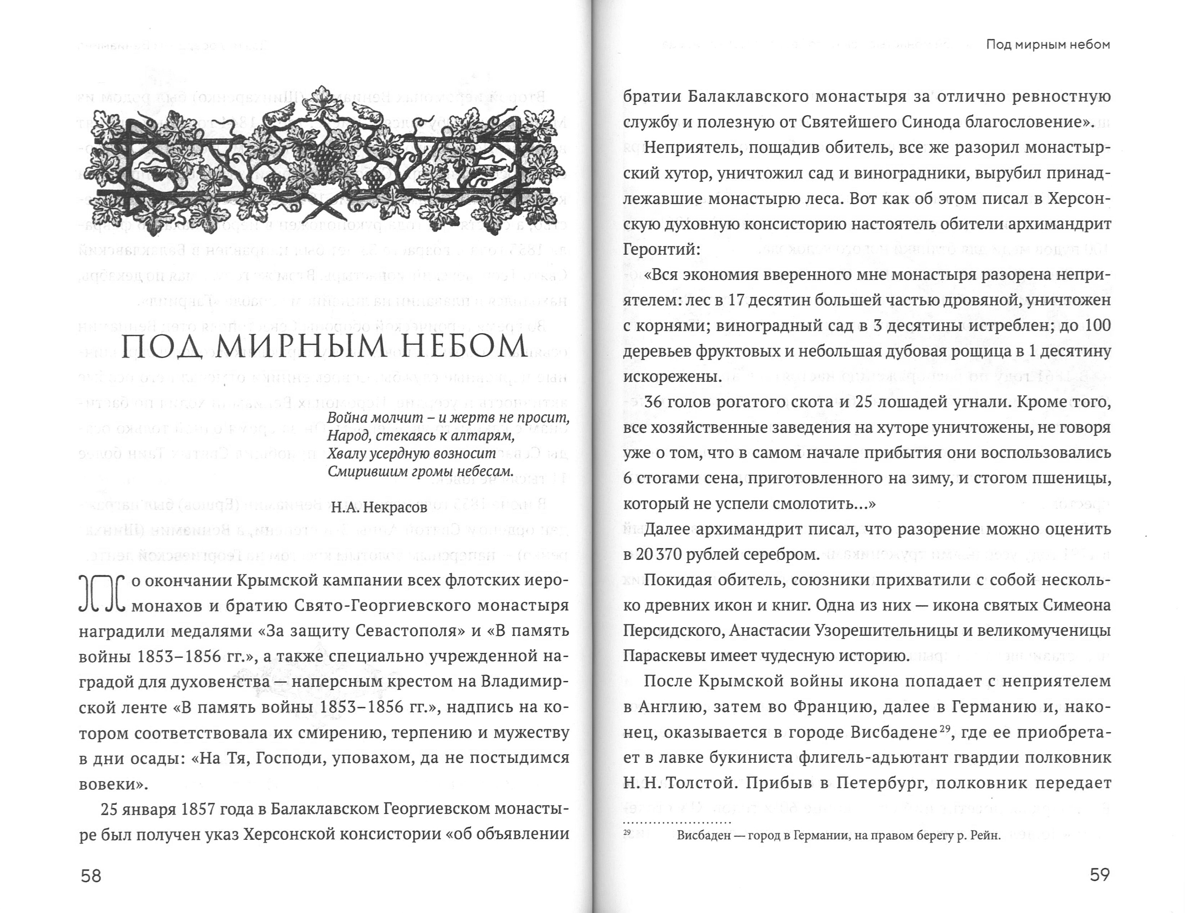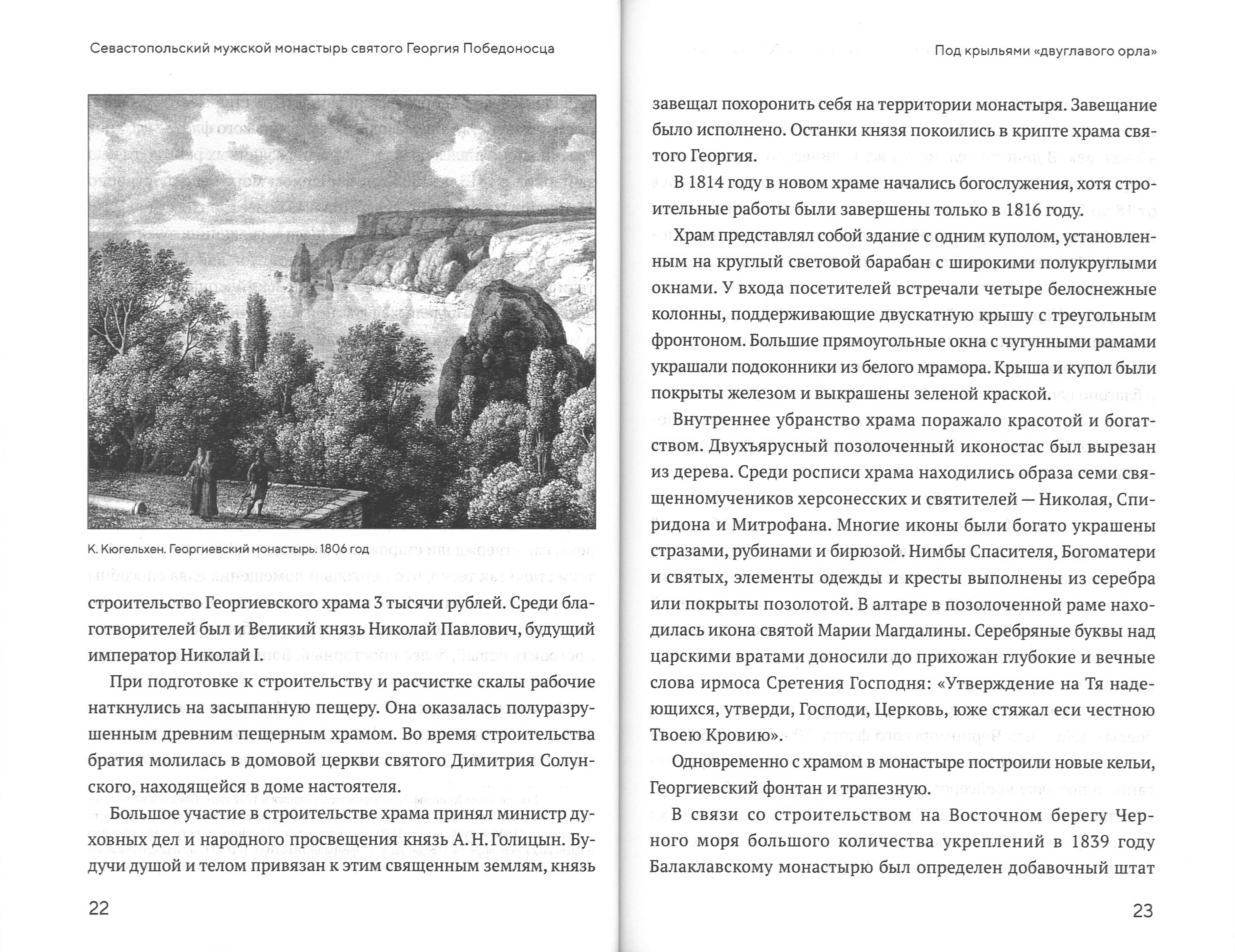 Исторический очерк о Свято-Георгиевском монастыре охватывает многовековой период его бытия — от основания до наших дней. Автор ведет рассказ настолько живо и интересно, что читатель, преодолевая время и пространство, буквально погружается в реалии давно минувших дней. При этом очерк имеет безусловную историческую ценность, как полноценное исследование.