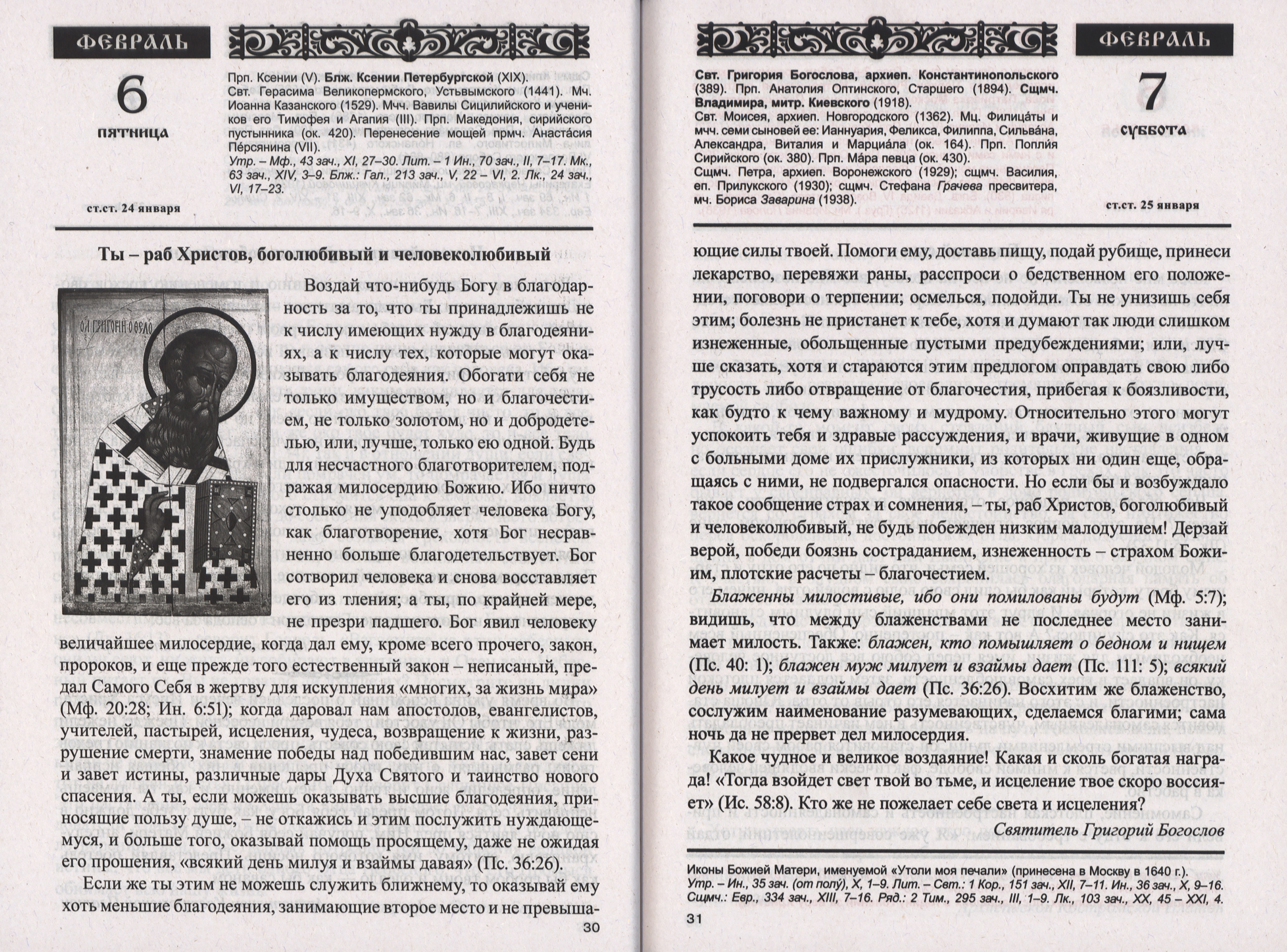 Православный церковный календарь «Год души» на 2026 год содержит душеполезные чтения на каждый день, выбранные из творений святых отцов, известных церковных проповедников и подвижников. По смыслу и объему текста статьи приспособлены для ежедневного прочтения и, как правило, относятся к событиям, празднуемым Церковью в этот день. При внимательном прочтении календарь поможет верующим глубже проникнуться духом церковного вероучения и смыслом ежедневной церковной жизни. Прилагаемая календарная сетка и указатель ежедневных чтений из Священного Писания соответствуют официальному церковному календарю.