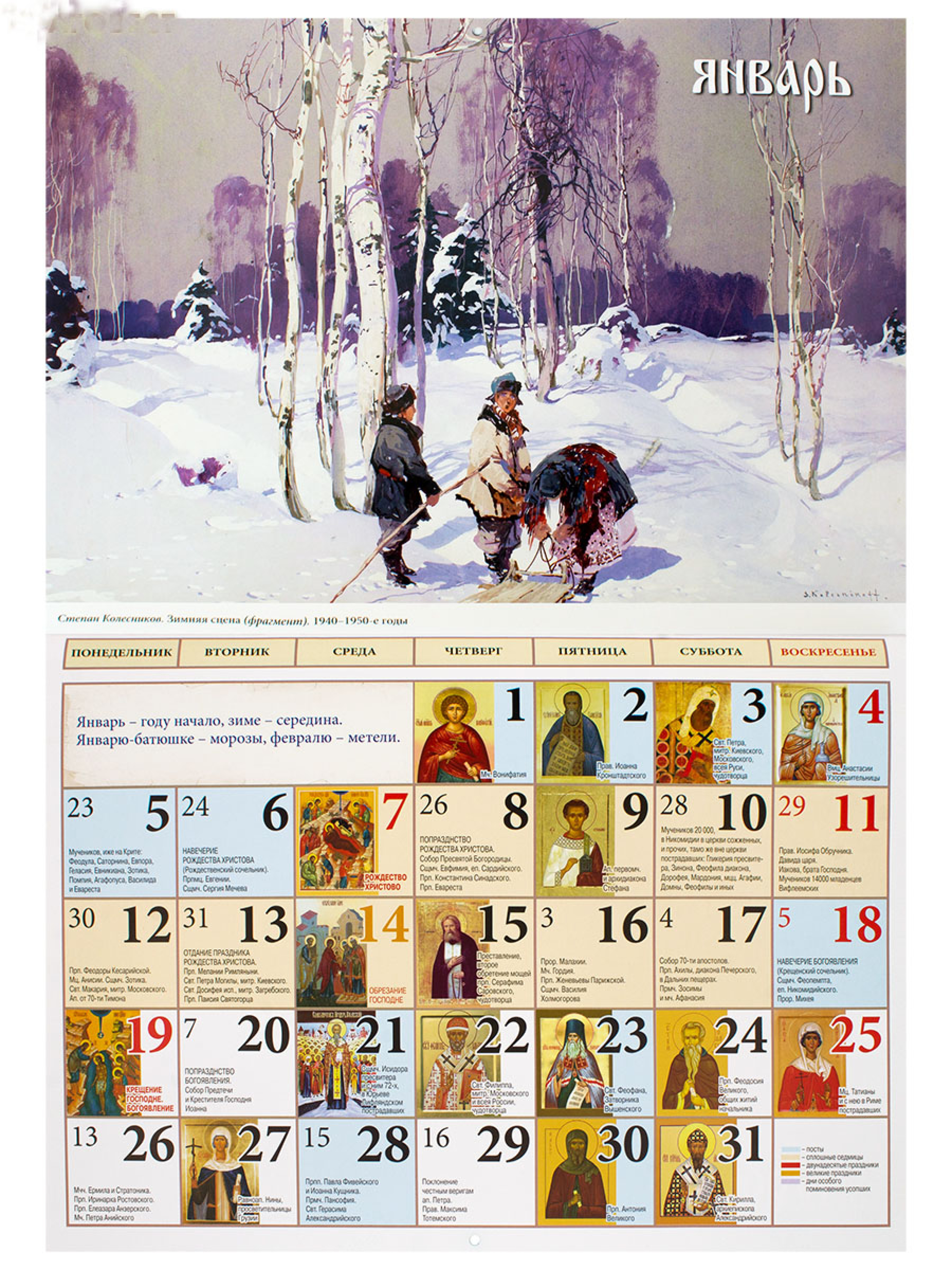 «Времена года» — это большой, иллюстрированный, настенный перекидной православный календарь на 2026 год. По полноте святцев он не уступает обычному календарю. В издании использована календарная основа с официального сайта rop.ru Издательства Московской Патриархии Русской Православной Церкви.