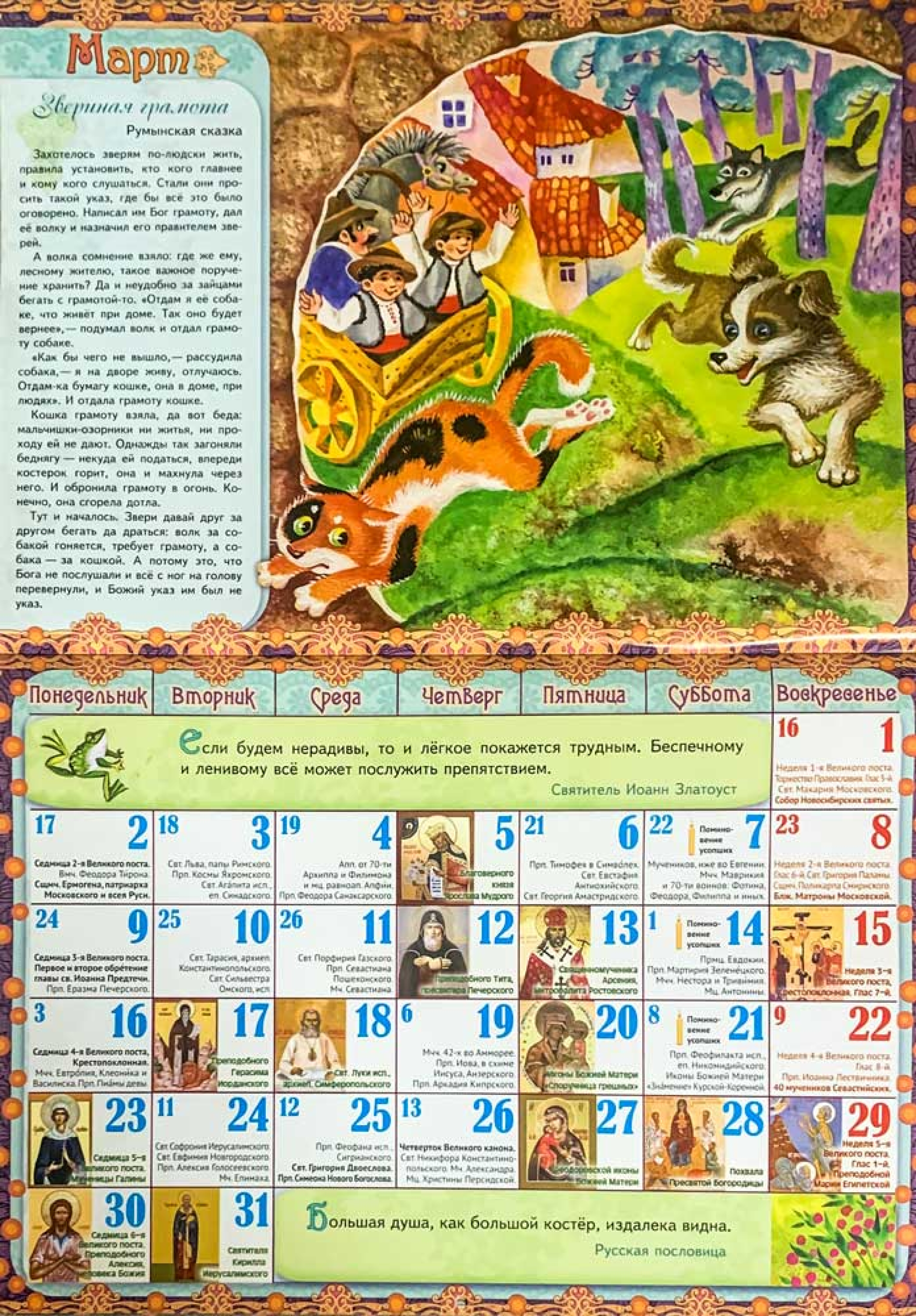 Перекидной православный календарь на 2026 год малого формата "Сказка ложь, да в ней намек, для детей и родителей " Этот иллюстрированный настенный перекидной календарь по полноте святцев не уступает обычному календарю. Четко обозначены праздничные дни.