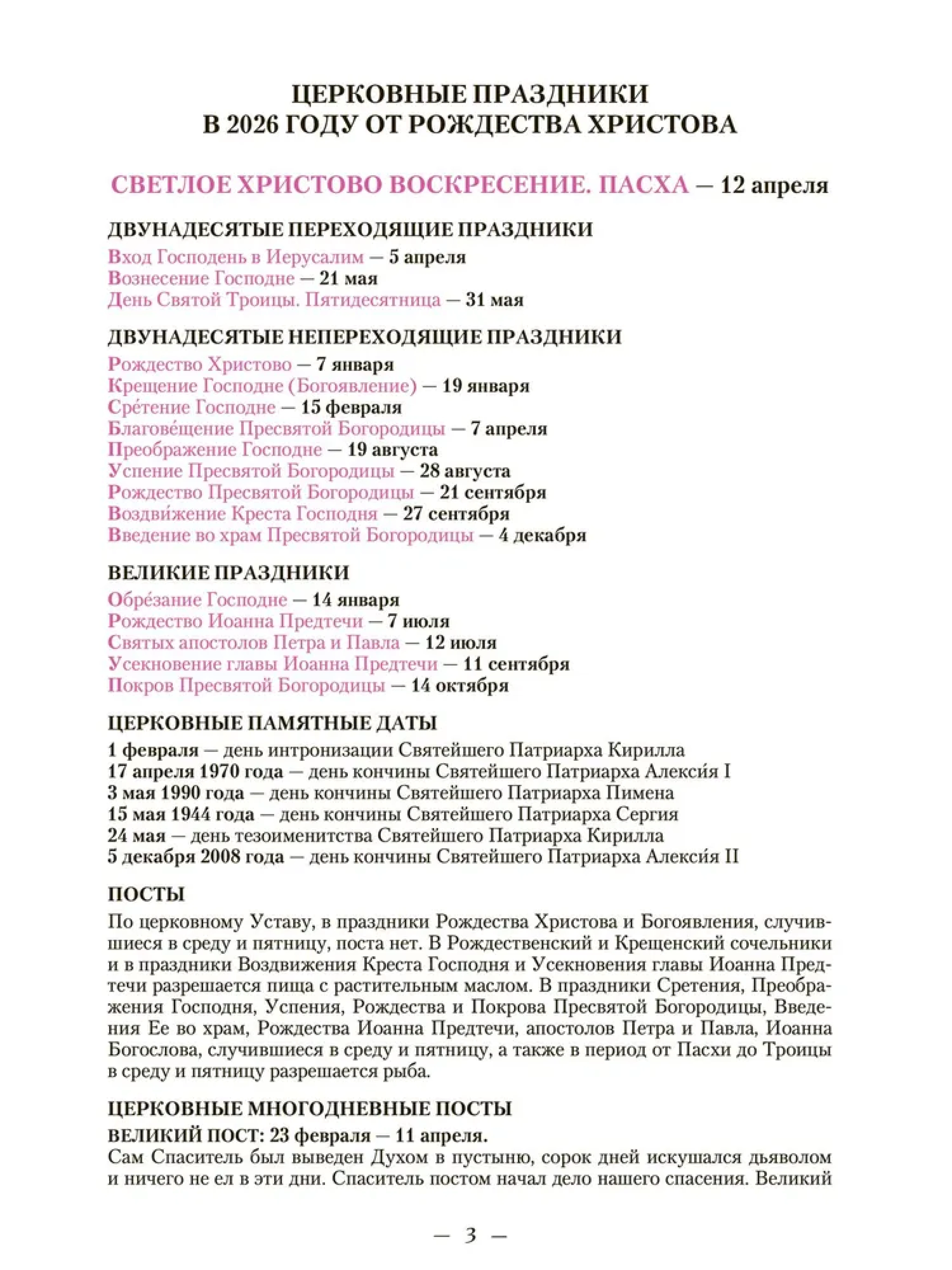 Православный календарь на 2026 год с Евангельскими чтениями, тропарями и кондаками на каждый день года. Великий покаянный канон, Пасхальный канон. Это издание, которое поможет быть в курсе всех событий богослужебной жизни Русской Православной церкви в течение календарного года.