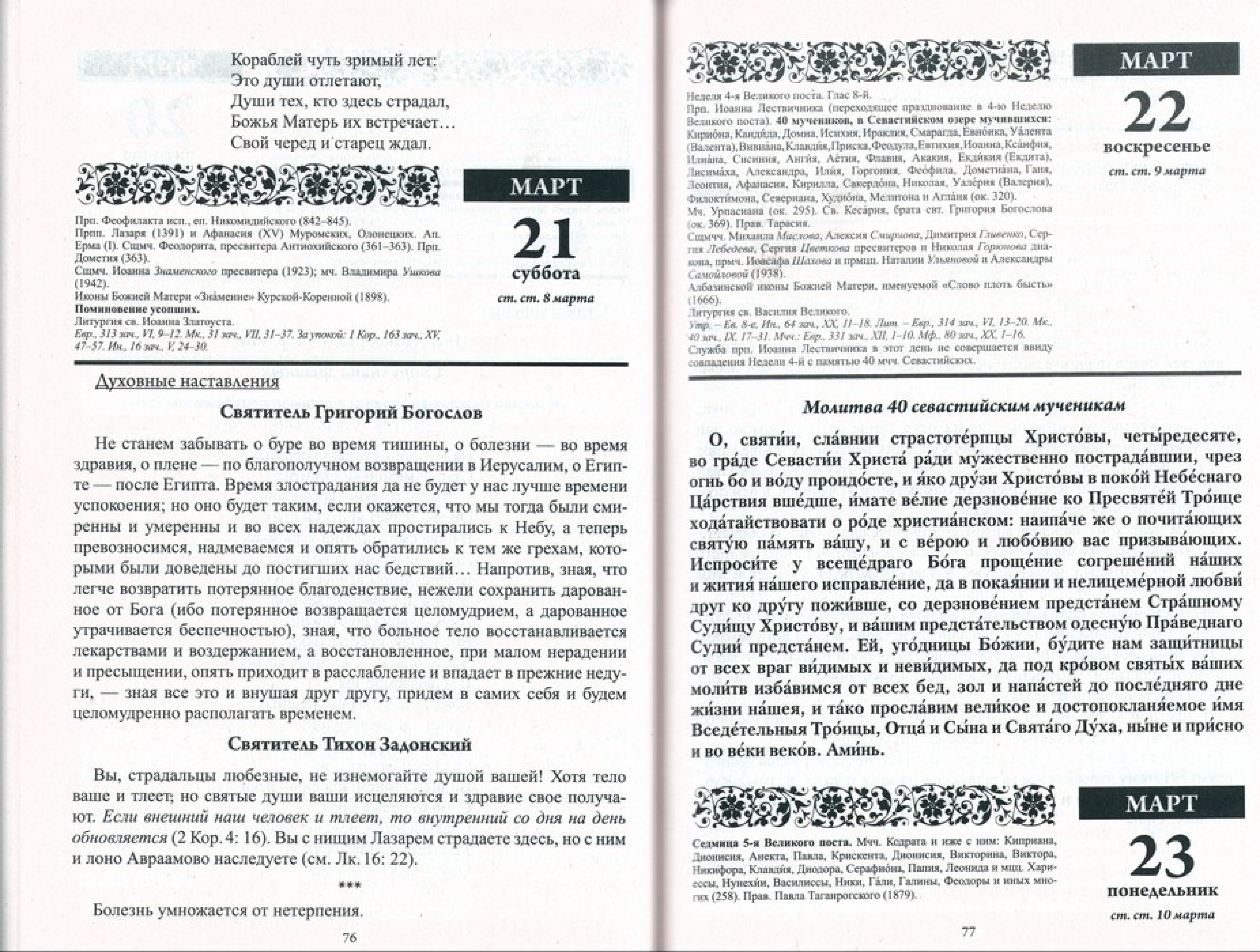 Проходя период скорбей мужественно и смиренно, можно взрастить малое семя собственной веры, подобно горчичному дереву. Определить причины телесных недомоганий, научиться принимал, их и по-христиански к ним относиться, а также правильно вести себя во время болезни помогут материалы православного календаря «Божий лекарь». В нем вы найдете выдержки из писаний святых отцов, выражающие взгляд Церкви на проблему телесных и духовных недугов, мнения современных священников по вопросам медицины и методов лечения, притчи, жития святых, при жизни бывших врачами, советы по оздоровлению организма проверенные временем рецепты фитотерапии и многое другое.