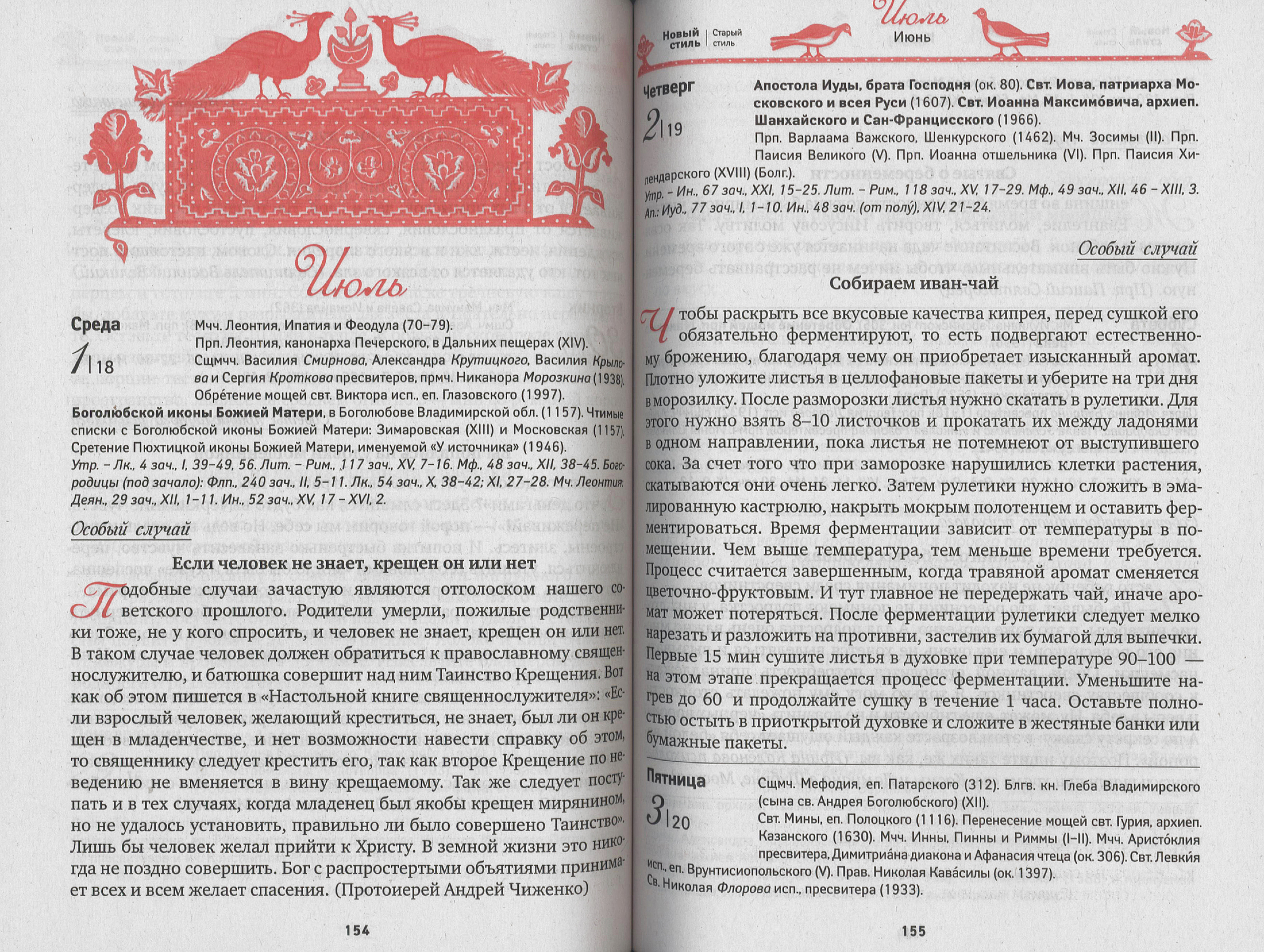 Помимо этого, читательницы найдут в календаре праздничные тропари, ответы духовенства на актуальные для многих вопросы, разъяснение православных понятий, терминов и традиций, советы православного психолога, рассказы бывалого монаха, рецепты и многое другое.