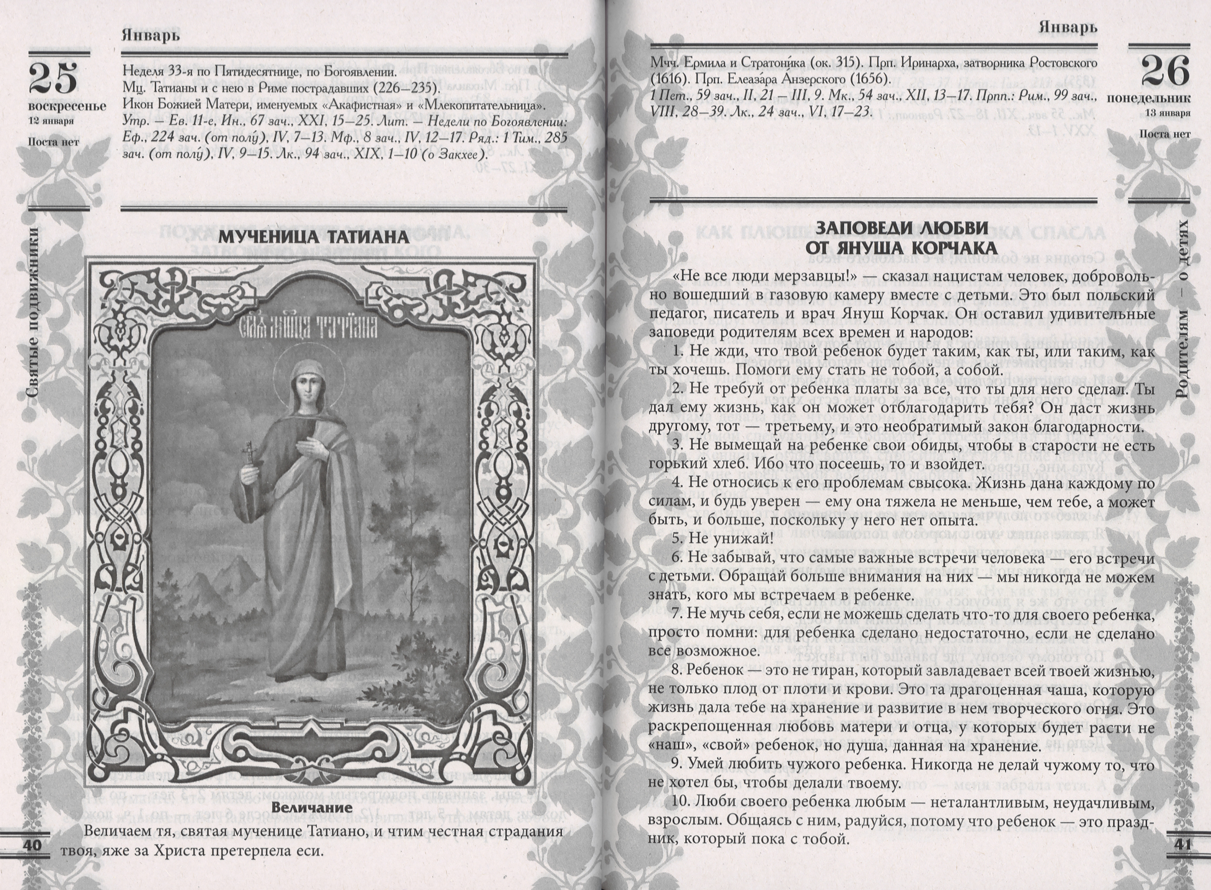 Женский православный календарь «Прихожанка» на 2026 год содержит чтения на каждый день. Читательницы найдут в нем иконы и тропари церковных праздников, святых, почитаемых на Руси образов Божией Матери. Полезные советы по сохранению и поддержанию здоровья, рецепты постных и праздничных блюд, подборка замечательных стихов русских поэтов, притчи, рассказы и сказки для чтения с детьми, советы православных психологов и священников — все это и многое другое традиционно делают «Прихожанку» настольной книгой современной православной христианки.