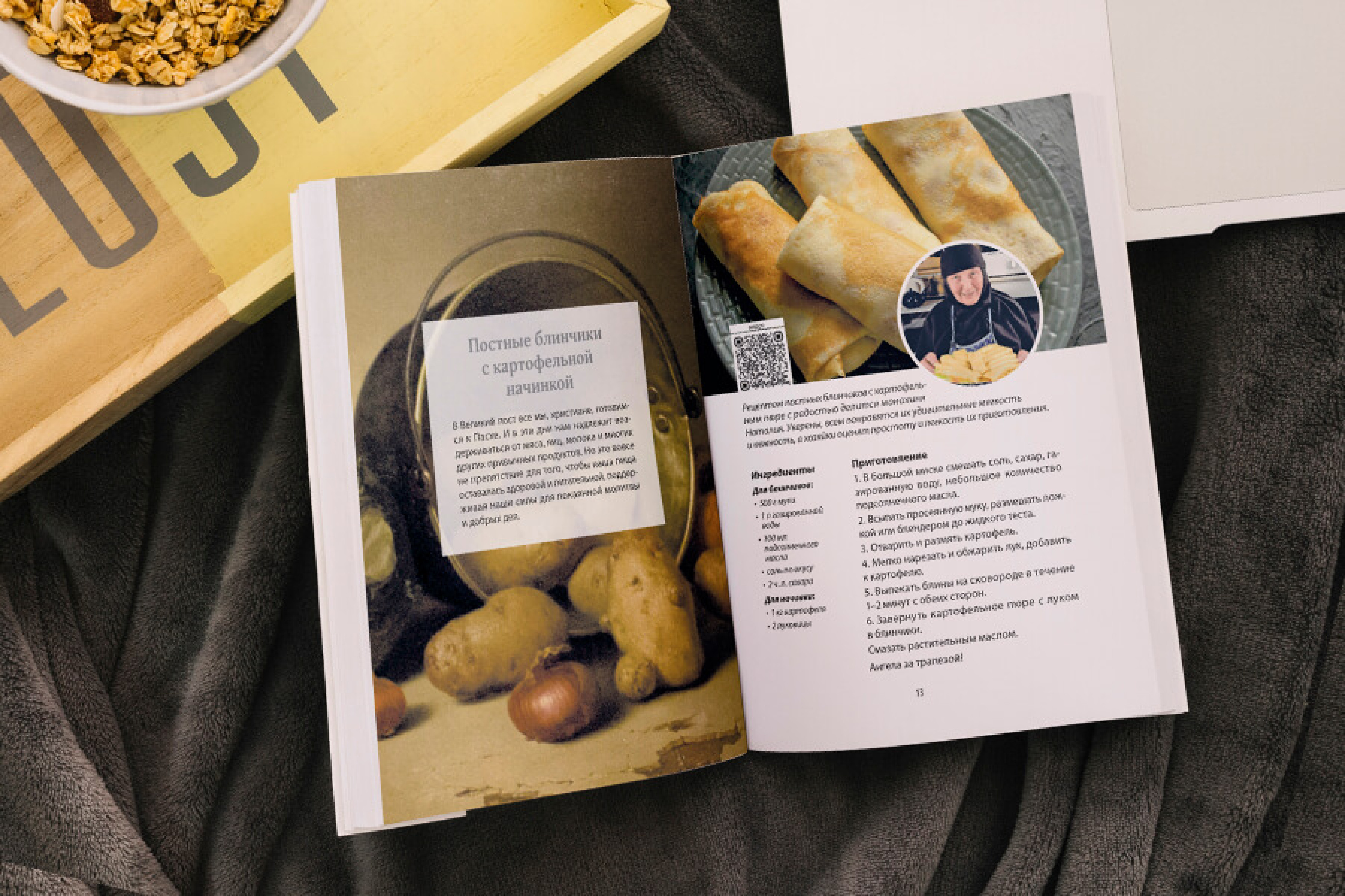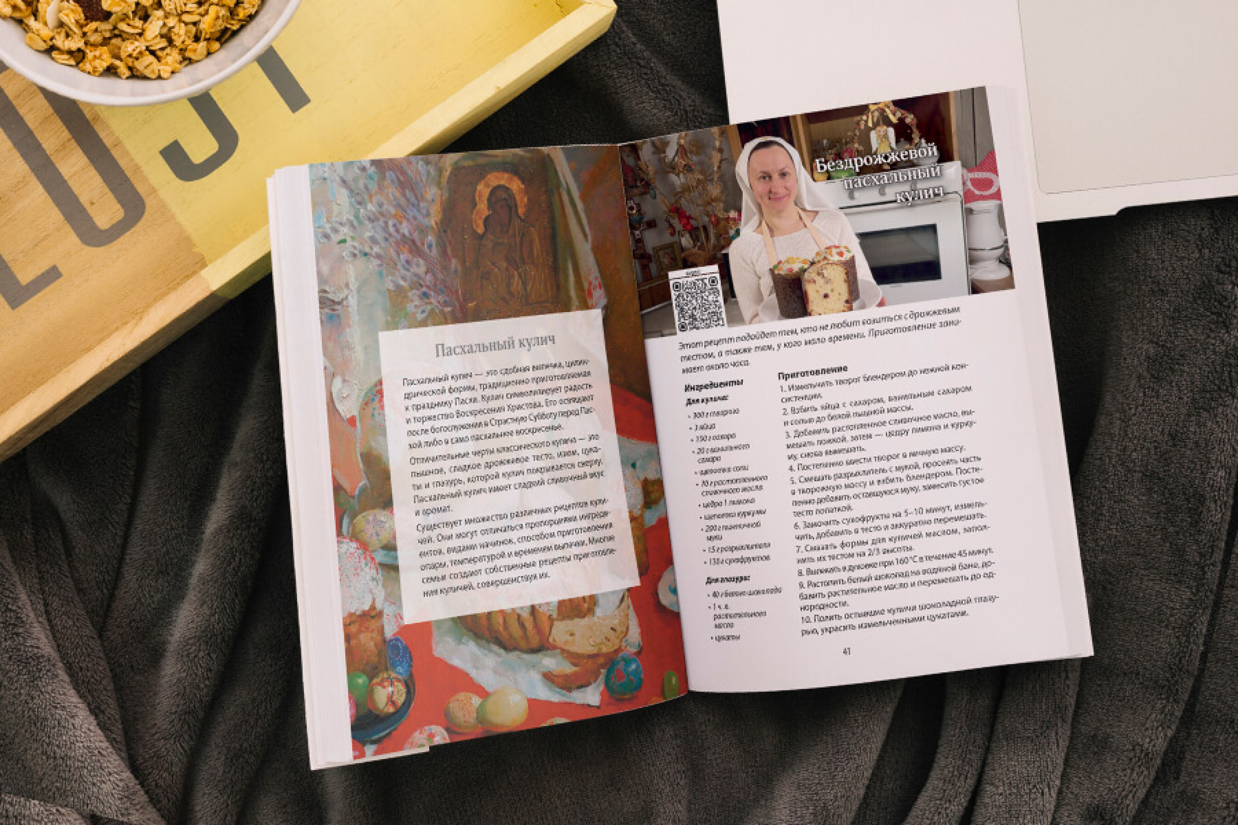 В небольшой сборник вошли любимые блюда сестер монастыря, которые представлены в видеосюжетах на нашем сайте в разделе «Монастырские рецепты». Сестры обители, приехавшие из разных стран, делятся своим опытом и любимыми рецептами. Среди них есть как постные блюда, так и те, что подойдут для любого дня. Все они приготовлены с молитвой, теплом и любовью и несут в себе частичку Божественной любви.