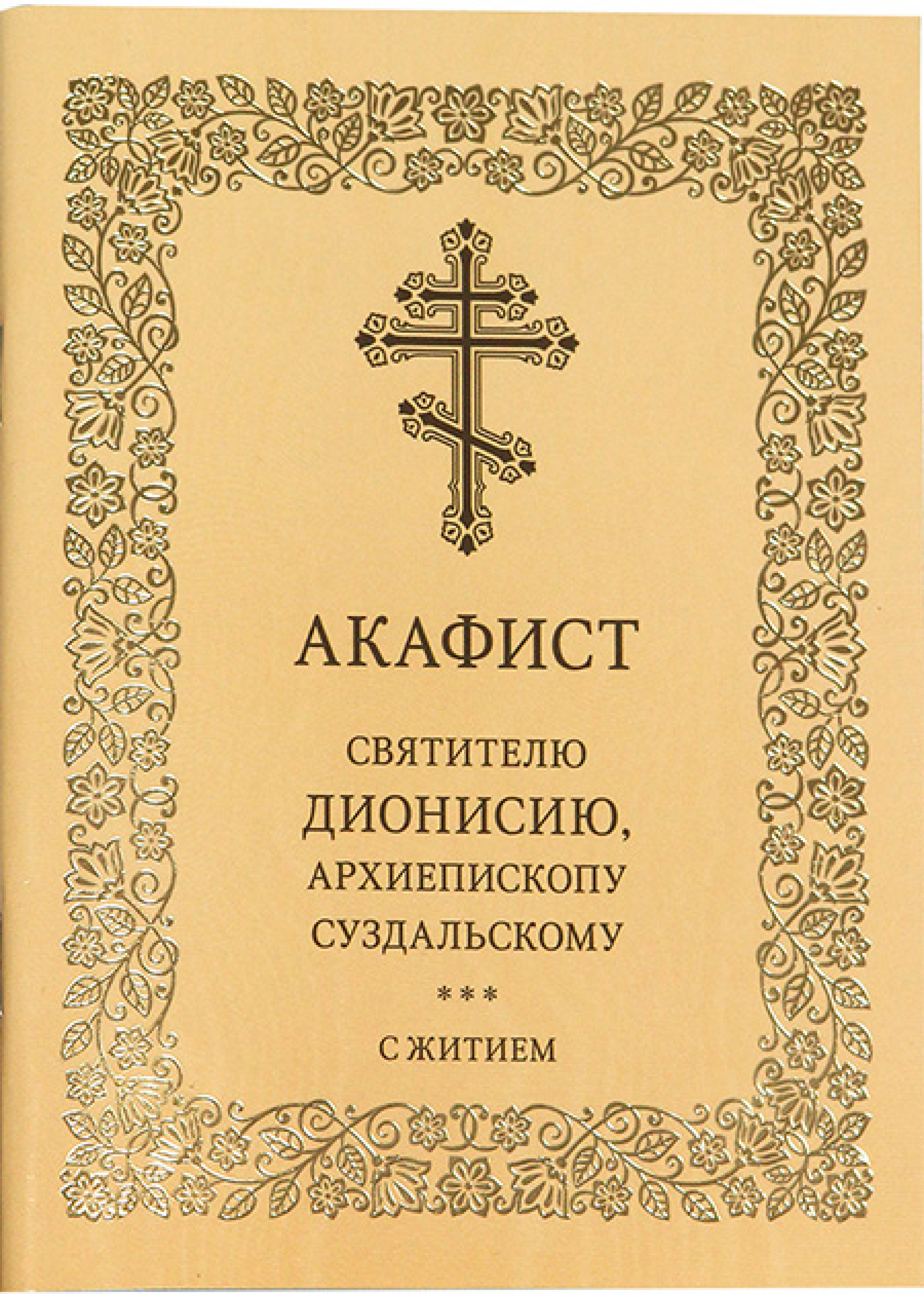 В Издательстве Московской Патриархии вышел в свет Акафист святителю Дионисию, архиепископу Суздальскому. Архиепископ Суздальский Дионисий (XIV в.) был избран на святительскую кафедру как муж кроткий и тихий, но премудрый и рассудительный, обладавший высокой духовной настроенностью и глубоким знанием Священного Писания.