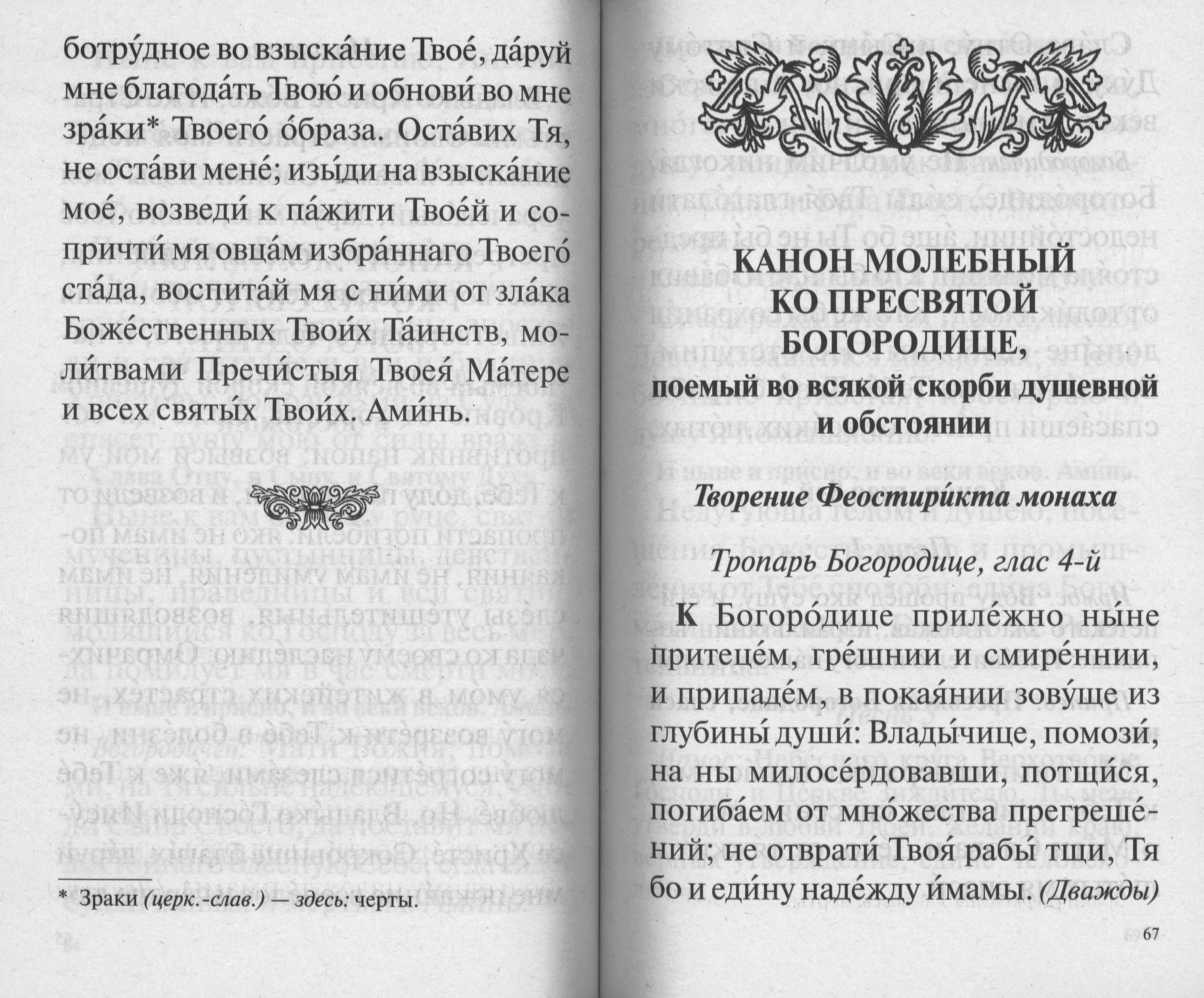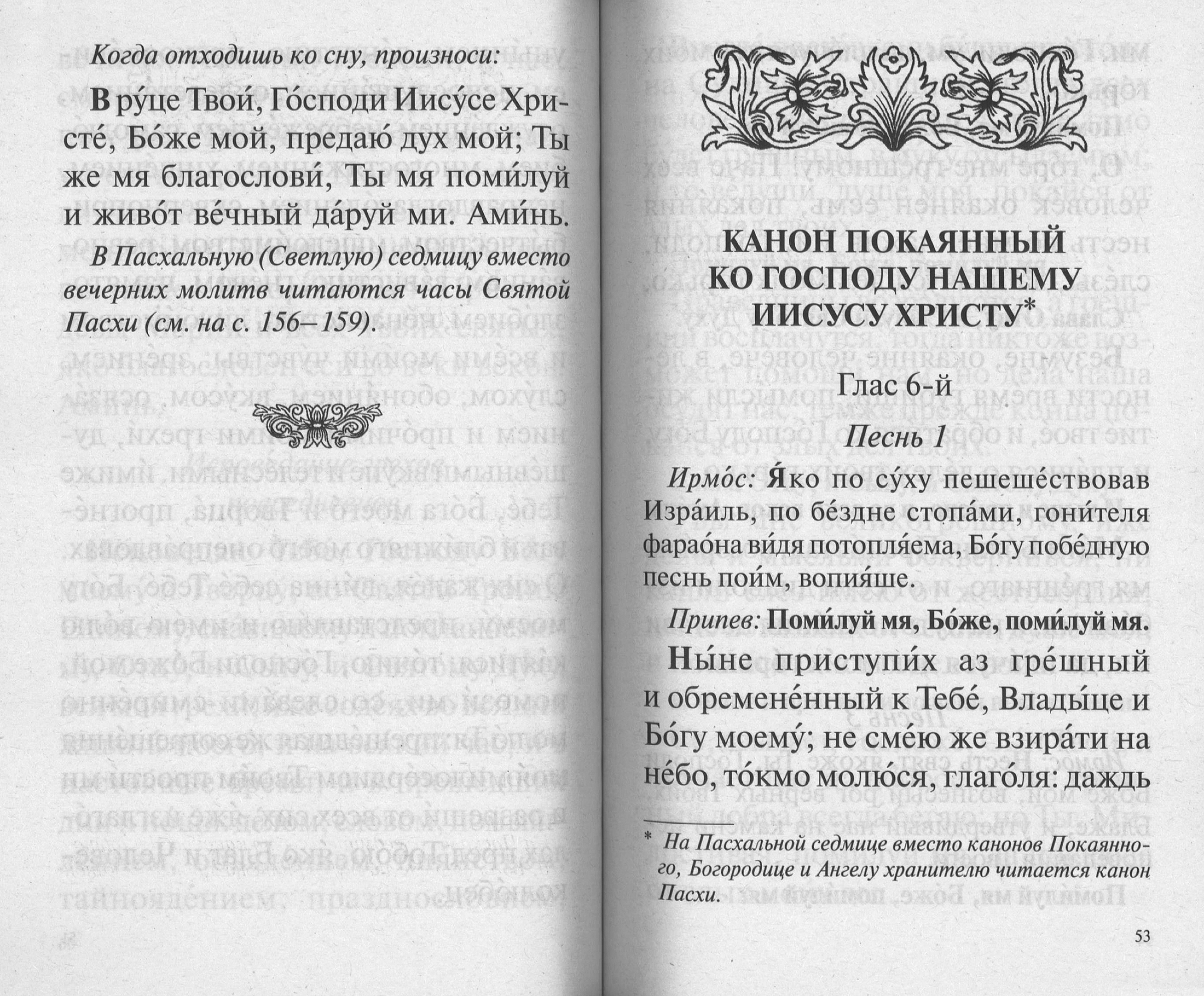 Молитвослов, напечатанный крупным гражданским шрифтом, содержит основные молитвы православного христианина: утренние, на сон грядущим, каноны раздельные, последование ко Святому Причащению, благодарственные молитвы по Святом Причащении, а также часы Святой Пасхи и всей Светлой седмицы.