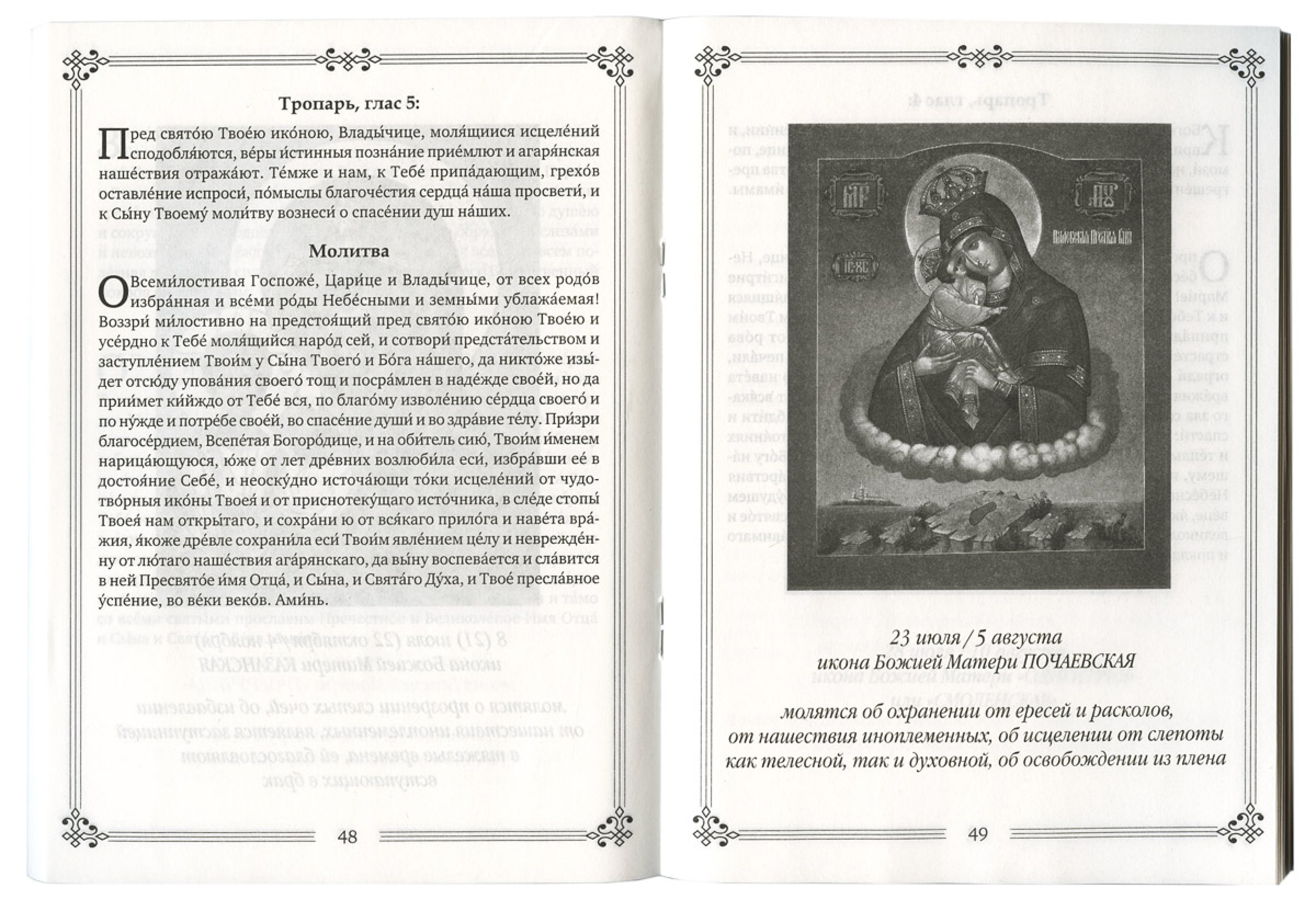 В этой книге приведены наиболее часто встречающиеся в храмах иконы Божией Матери (как правило копии с оригинальных икон), тропари и молитвы перед ними. Божия Матерь множество раз являлась людям в разных образах (с Божественным младенцем на руках или без него, разные одеяния, разное положение рук, с разными предметами в руках, идущей по земле или парящей в небе и так далее) по всему миру. Основываясь на описаниях (зарисовках) людей видевших Пречистую Богородицу иконописец писал икону. Всего насчитывается около семи ста разных образов Богородицы, из них около четырех сот признаны чудотворными, но, не смотря на это, Божия Матерь одна!Год издания: 2013