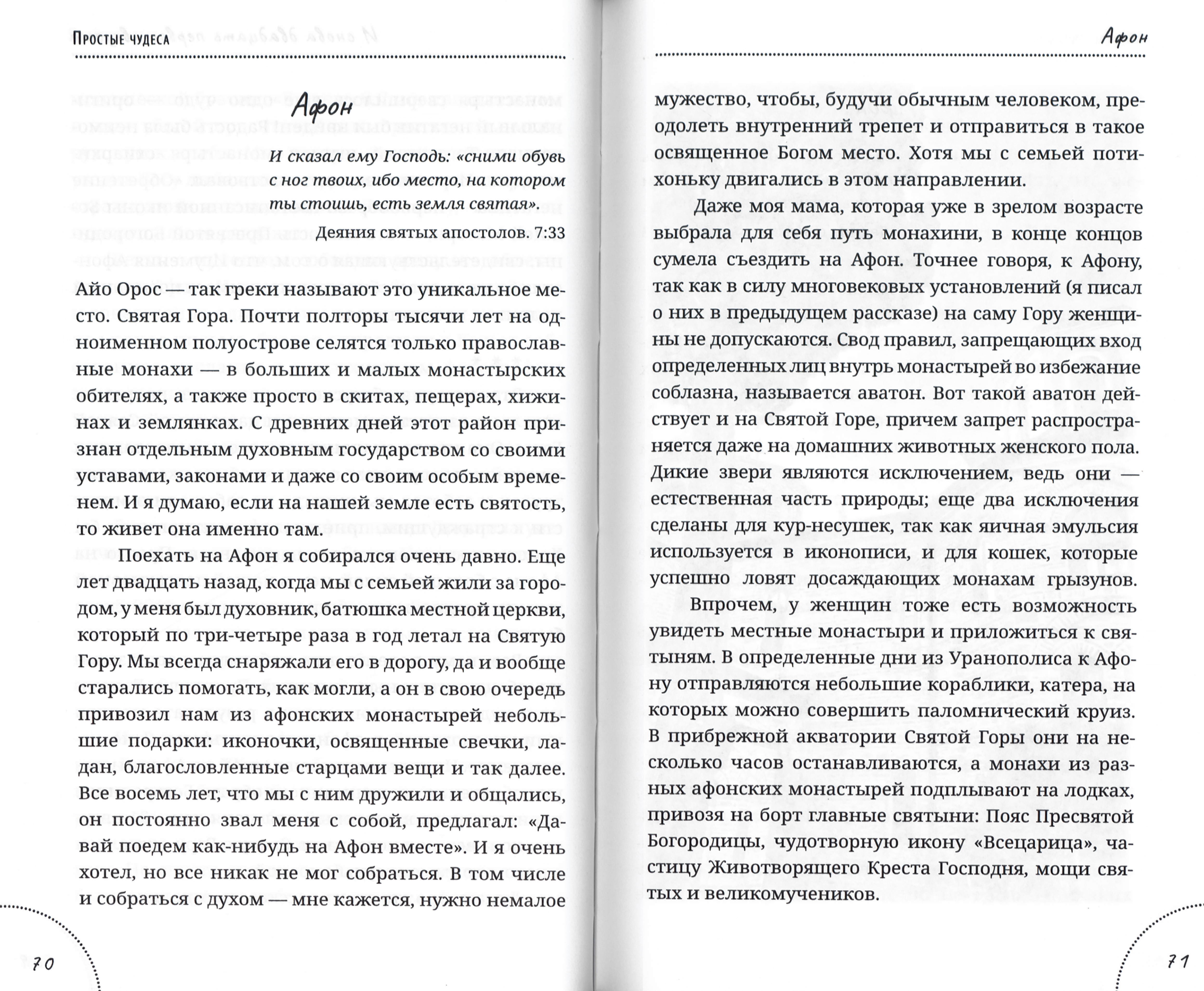 Книга Павла Астахова, известного адвоката, писателя и телеведущего, продолжает тему поразительных событий и чудес в жизни самого автора, его близких и просто знакомых, а также тех, кто поделился своими удивительными историями в программе «Простые чудеса» на православном телеканале «СПАС». Всех гостей программы объединяет любовь к Богу и благодарность за Его простые чудеса. Значительная часть книги посвящена паломничеству автора на Святую Гору Афон.