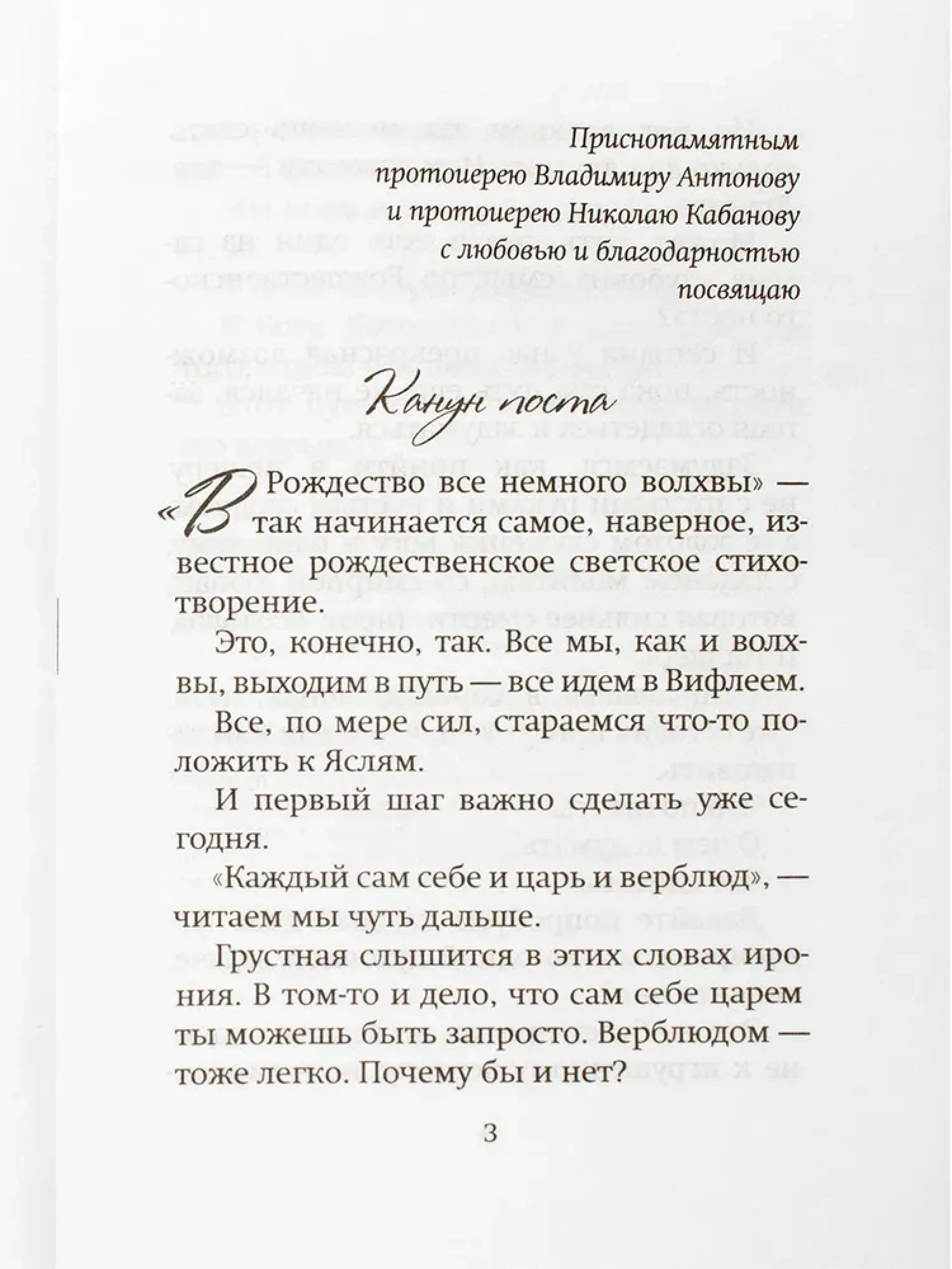 Книга, которую вы держите в руках, представляет собой уникальное произведение литературы, посвященное духовным встречам и православной традиции. В период Рождественского поста, который начинается за сорок дней до Рождества, мы идем к Вифлеемской пещере, и на этом пути нас ждут совершенно неожиданные встречи. Основная тема книги — Богообщение в будничности, путь малых дел, ибо «ходить перед Богом» по мере своих сил может каждый из нас, главное желание. В произведении описаны встречи Александра Сергеевича Пушкина и аввы Дорофея, Антона Павловича Чехова и преподобного Иоанна Лествичника , Рэя Брэдбери и святителя Феофана Затворника. Эти встречи выстроены вокруг главной Встречи — с Богом. Литература, представленная в книге, демонстрирует, как талантливые писатели порой удивительно близко подходят к христианскому мировоззрению, облекая в художественную форму открытия, сделанные задолго до них святыми.