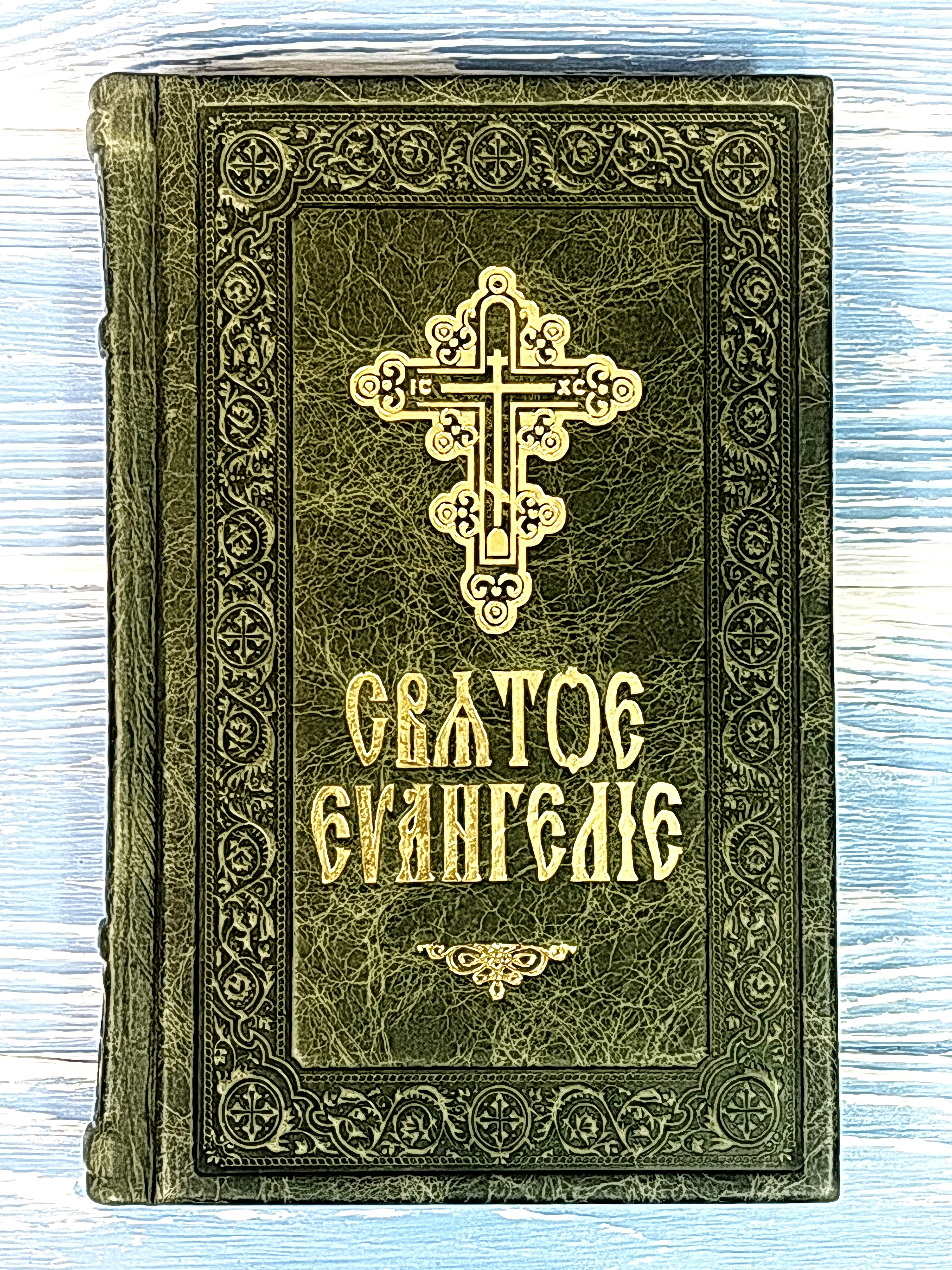 Святое Евангелие в твердой обложке из натуральной кожи (ручная работа) с красивыми узорами, с закладкой.Год издания: 2024