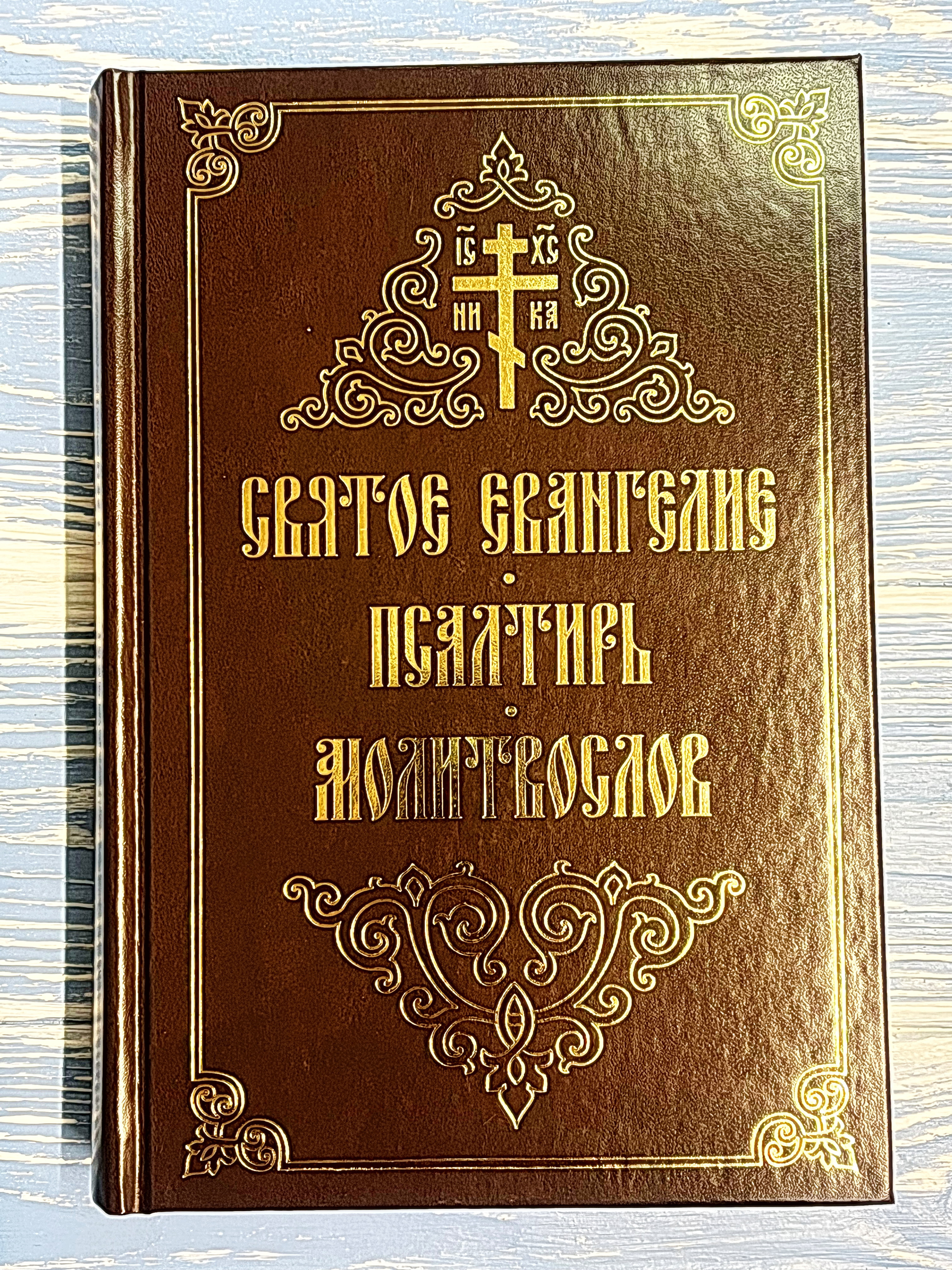 В одной книге собраны Святое Евангелие, псалтирь, молитвослов. Двухцветная печать, ляссе. хороший шрифт, плотная белая бумага.