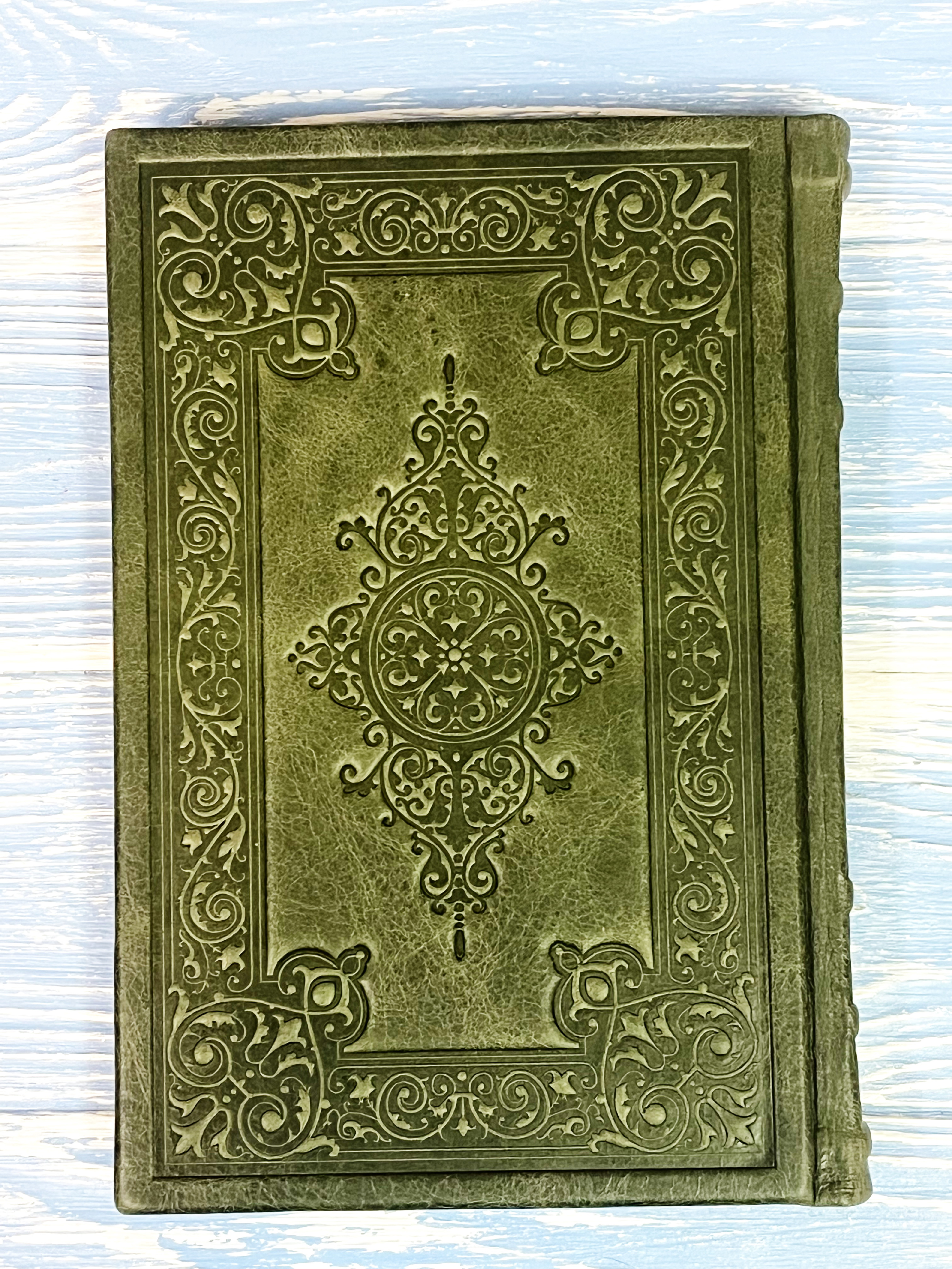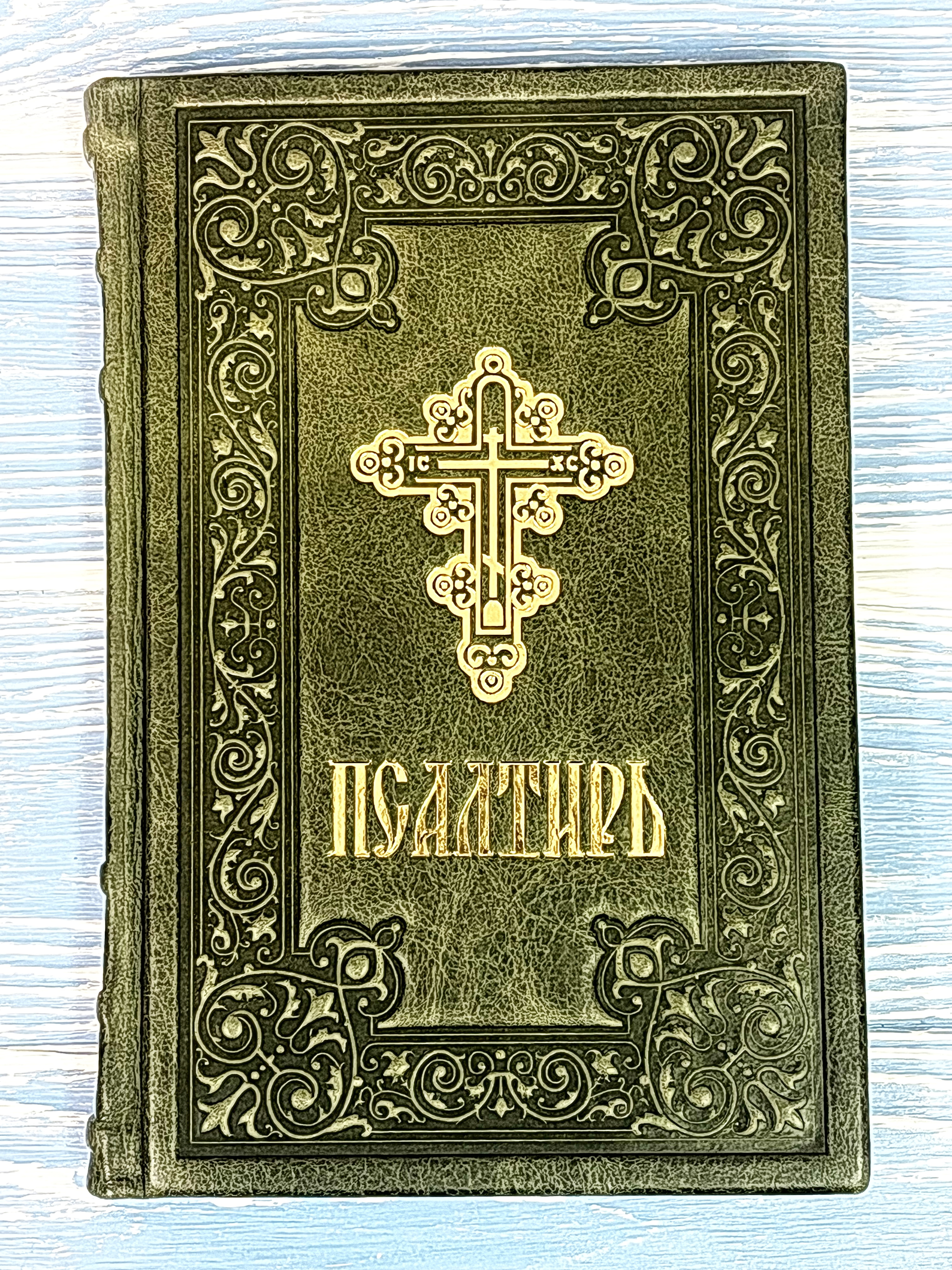 Использован кожаный переплет с тиснением золотой фольгой, качественная офсетная бумага с тонированным обрезом блока. Для удобства книга снабжена ленточкой-закладкой.