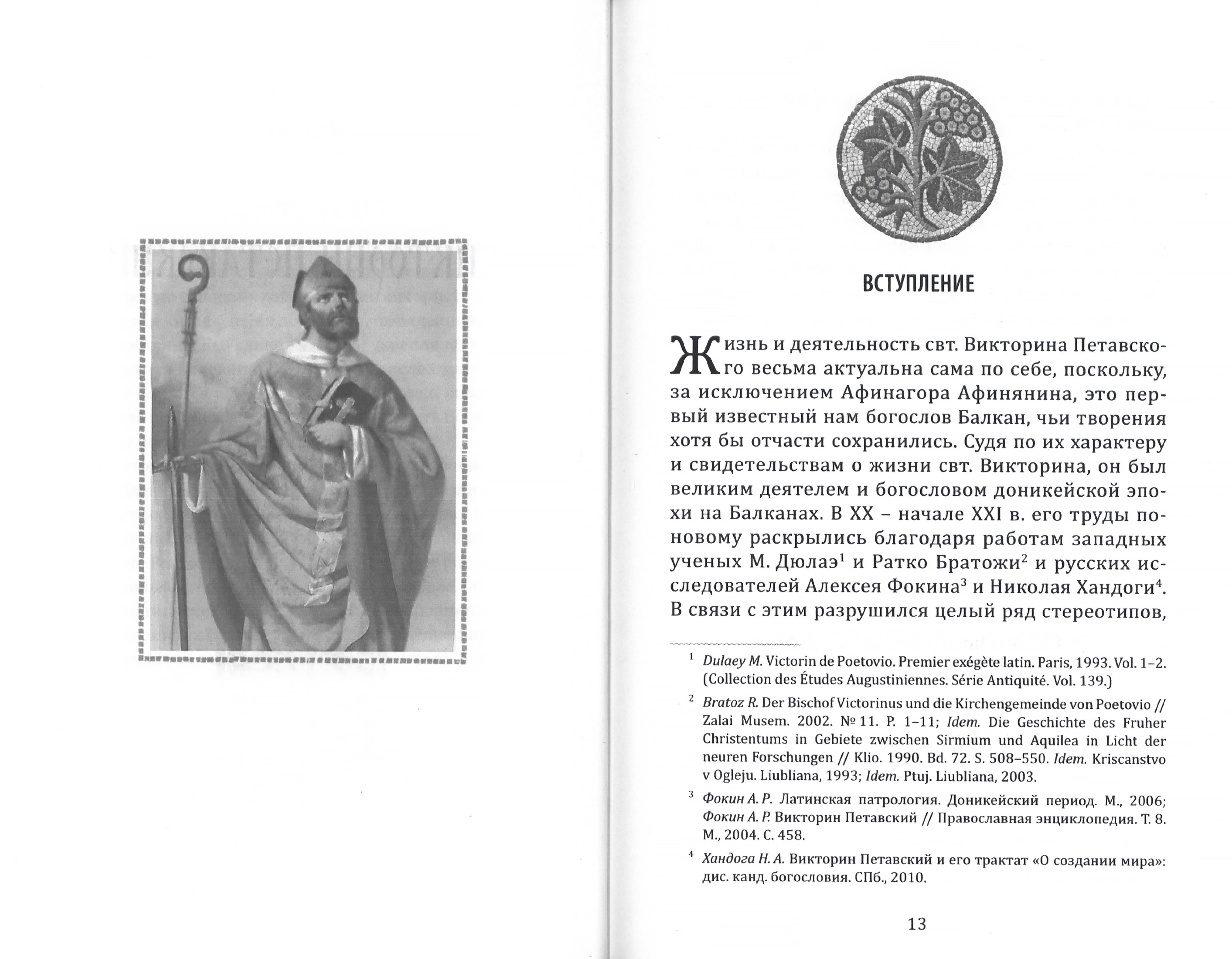 Книга содержит ранее не переводившиеся тексты первого латинского экзегета святителя Викторина Петавского († ок. 304 г.) и святителя Никиты Ремесианского († 420 г.). Помимо комментированных переводов с латинского языка в книге представлены исследования, посвященные свт. Викторину и его «Толкованию на Апокалипсис», проповедям свт. Никиты Ремесианского «О бдениях», «О благе псалмопения», «О различных наименованиях Христа», в которых подробно рассматриваются не только жизненный путь свт. Никиты и его богословие, но и жизнь раннехристианских общин в балканских провинциях Римской империи, их богослужение и повседневная практика.