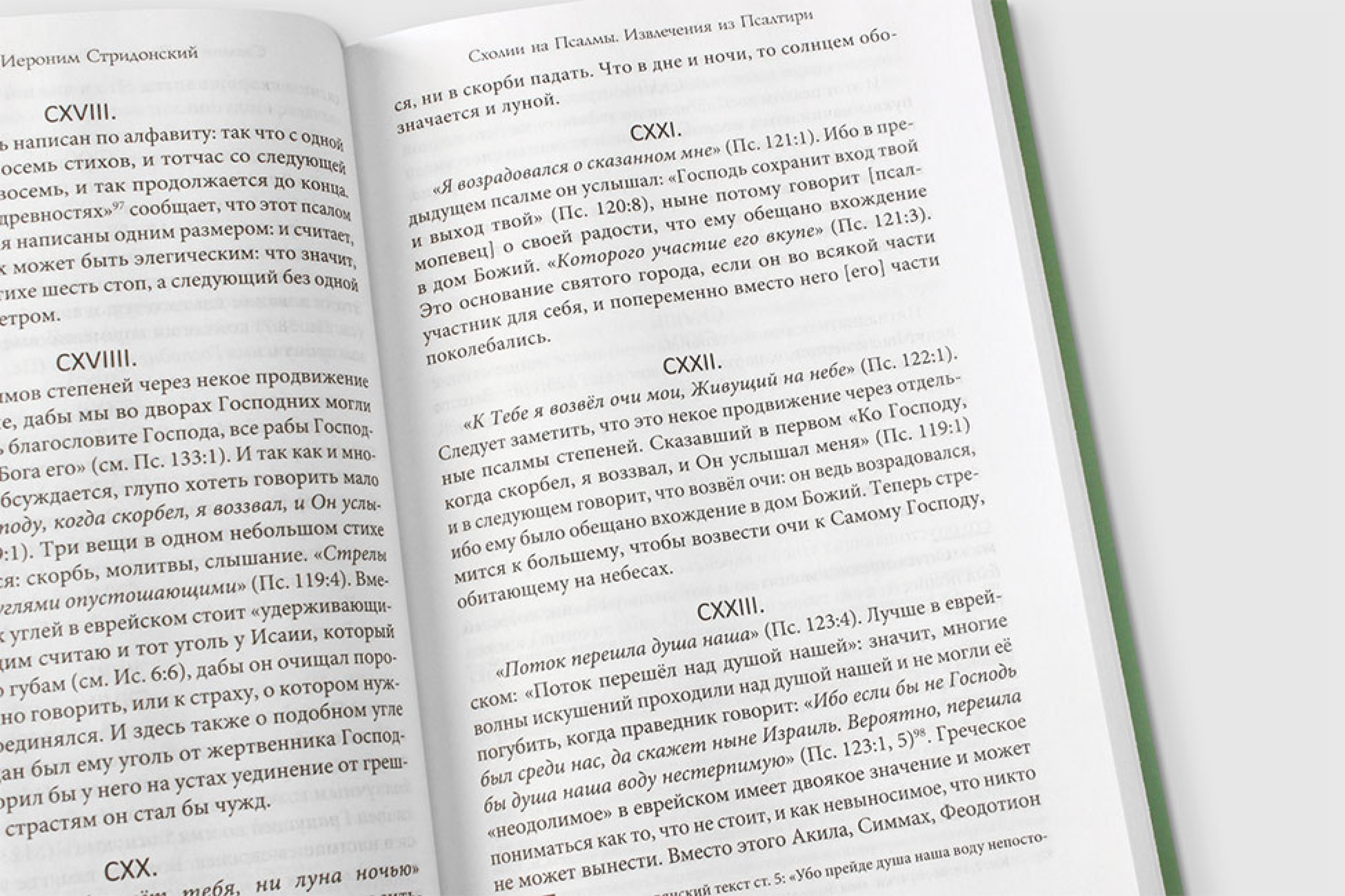 Книга «Комментарии на Псалмы. Схолии и письма» содержит комментарии блж. Иеронима Стридонского к стихам Псалтири, названные «Схолии на Псалмы», а также четыре его письма, в которых толкуются некоторые псалмы и встречающиеся в них выражения, в том числе с объяснением различий между древнееврейским текстом и Септуагинтой. Для более глубокого понимания этих произведений приводятся биографии адресатов писем и краткая характеристика самих посланий. В переводах сохранены особенности латинского оригинала. В сносках разъясняются места, в которые могут вызвать вопросы.