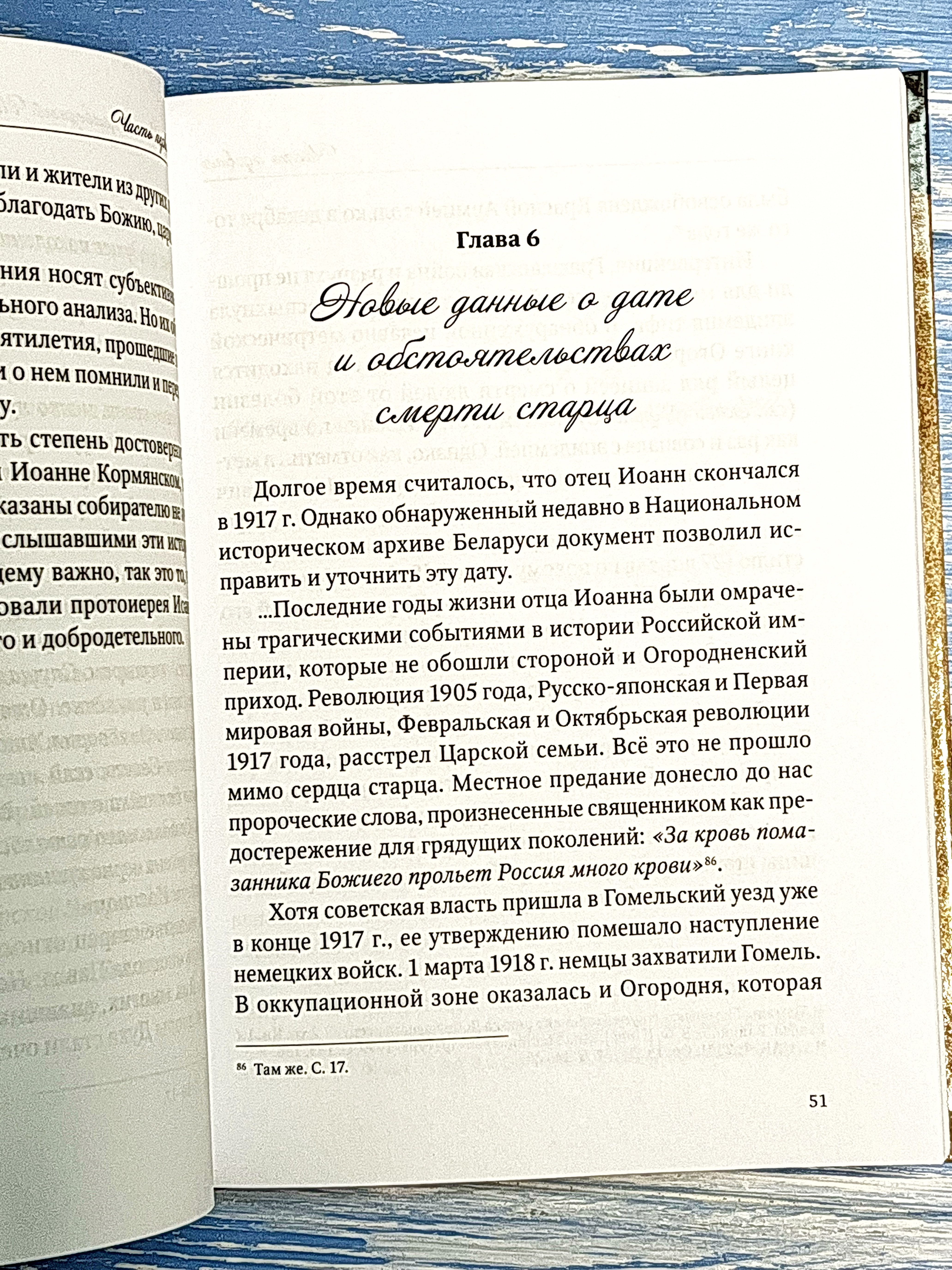 Одна из глав посвящена приходу в деревне Огородня – именно там отец Иоанн жил, именно там началось его пастырское служение. Особое внимание в книге уделено Иоанно-Кормянскому монастырю: рассказывается, как возрождалась приходская жизнь и образовалась женская обитель, кто становился её первыми сестрами и игумениями.